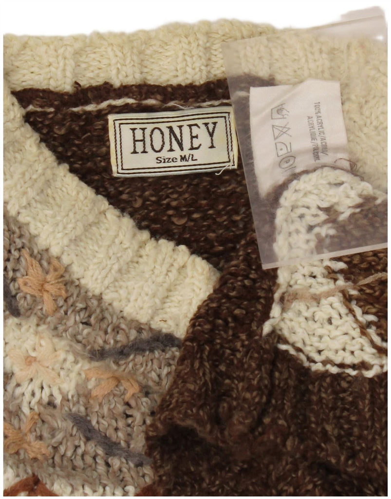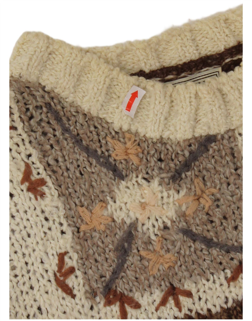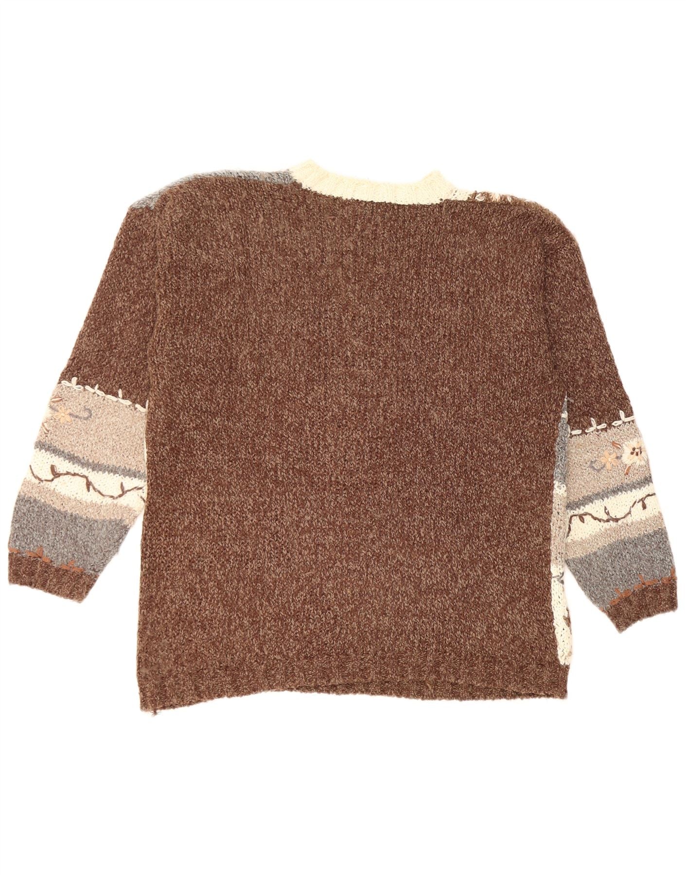 VINTAGE Mujer Crew Neck Jumper Suéter Reino Unido 14 Marrón Medio Floral