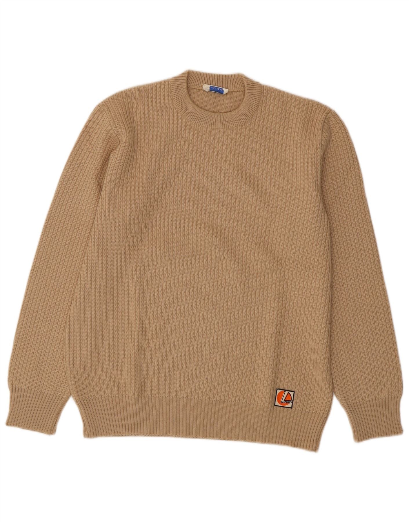 VINTAGE suéter de cuello redondo para mujer Reino Unido 16 lana beige grande
