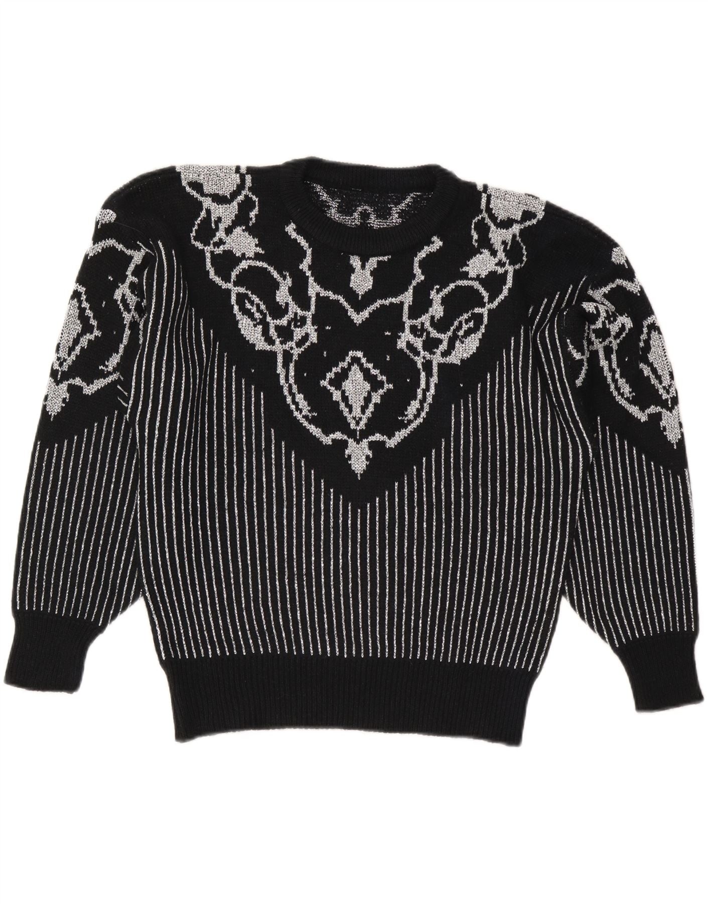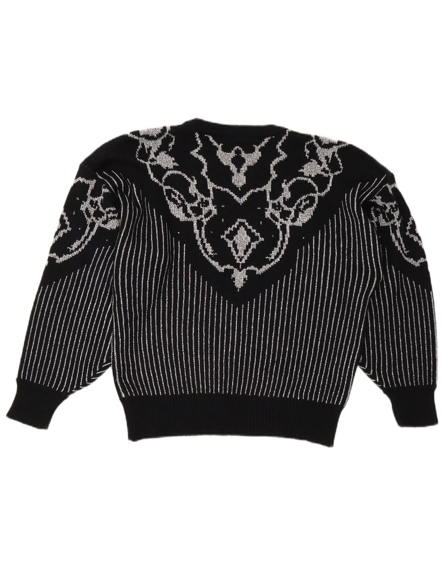 VINTAGE Womens Crew Neck Jumper Sweater UK 16 Large Black Geometric
