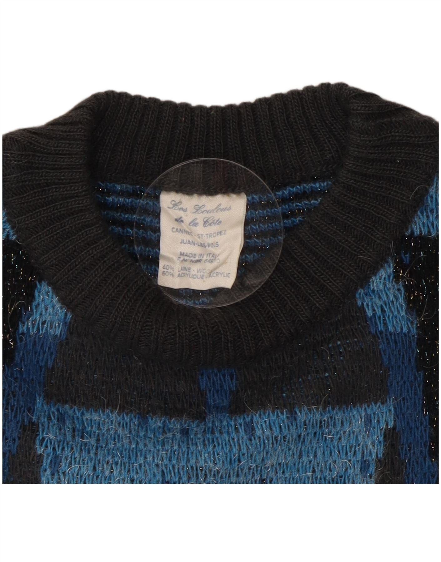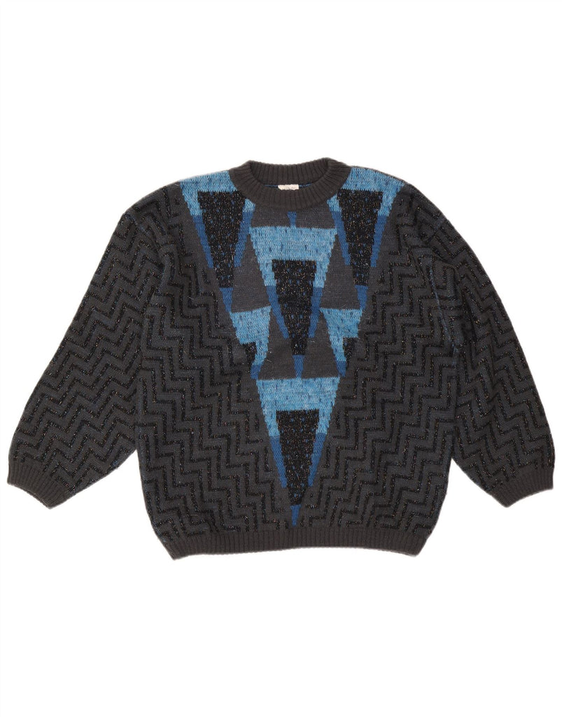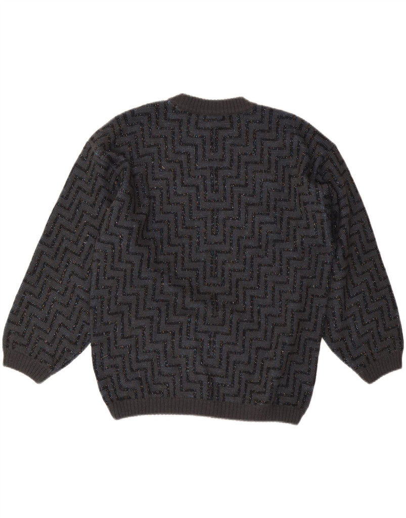VINTAGE Mujer Crew Neck Jumper Suéter Reino Unido 16 Gran Gris Chevron Lana