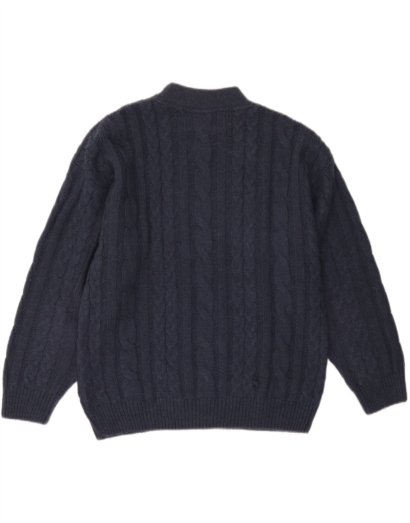 VINTAGE suéter de cuello redondo para mujer Reino Unido 18 XL Acrílico azul marino