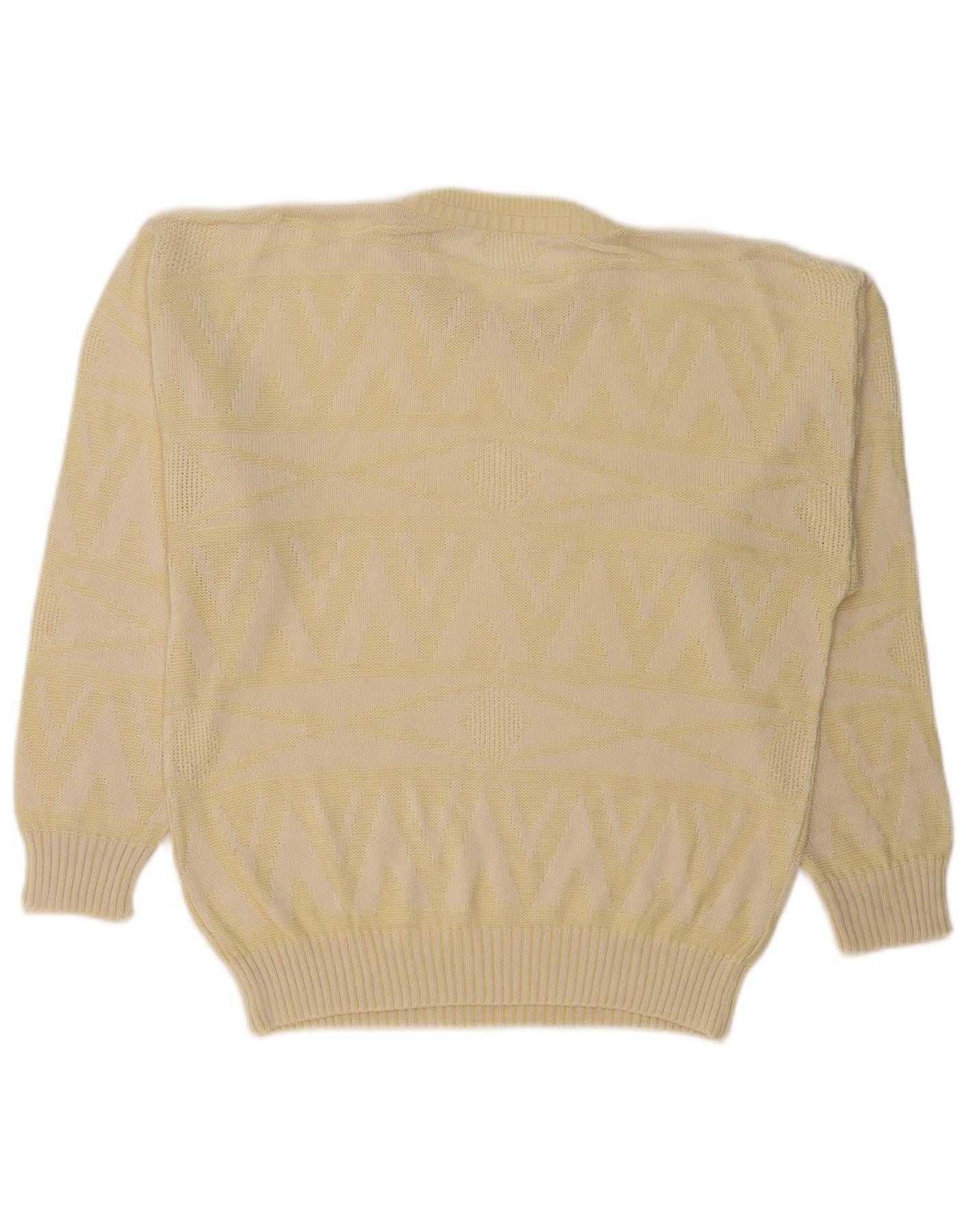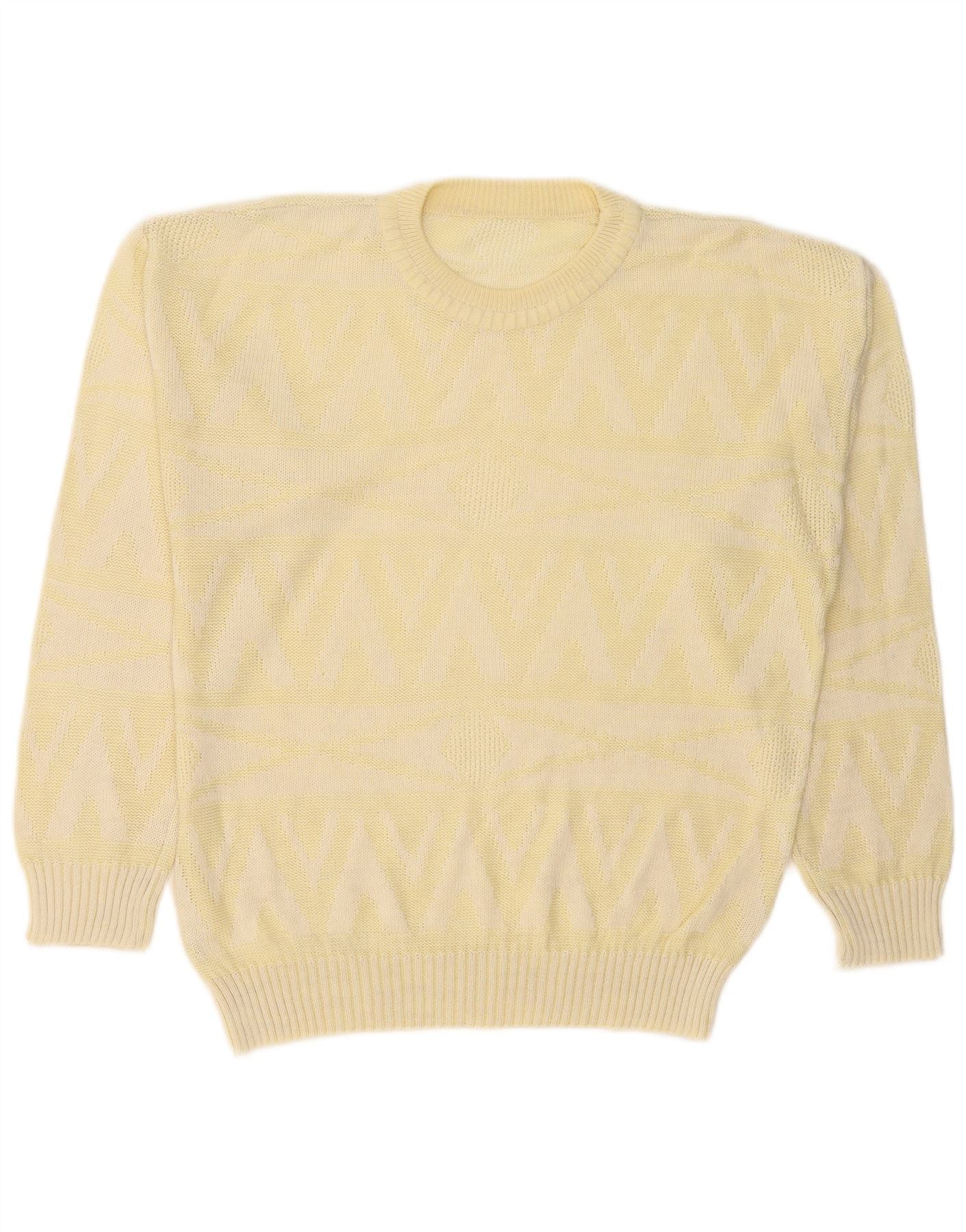 VINTAGE Mujer Crew Neck Jumper Suéter UK 18 XL Acrílico Geométrico Amarillo