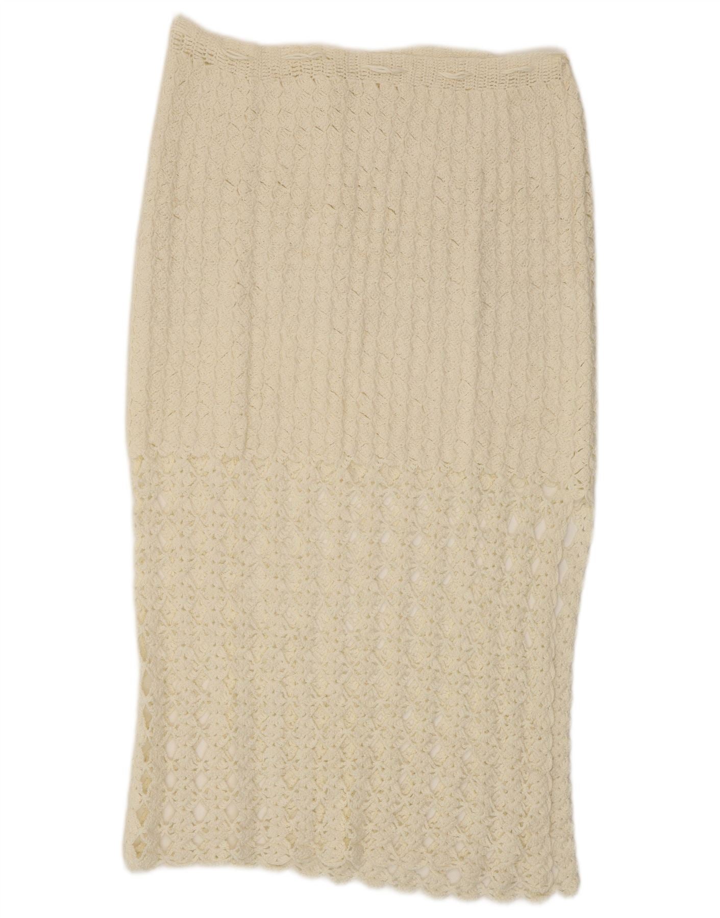 VINTAGE Falda Midi de Ganchillo para Mujer W32 Blanco Grande