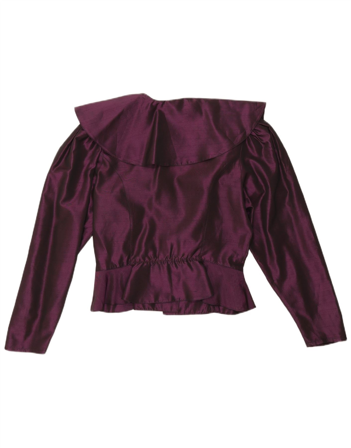 VINTAGE Mujer Crop 1 Botón Blazer Chaqueta Reino Unido 16 Púrpura Grande