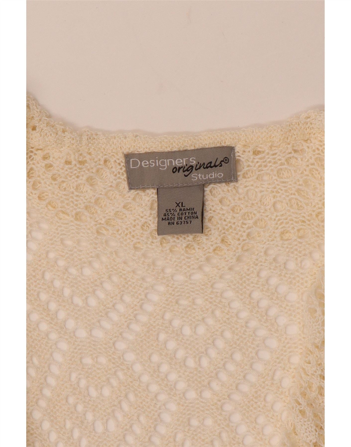 VINTAGE Mujer Crop 3/4 Manga Crochet Cardigan Suéter UK 18 XL Off White