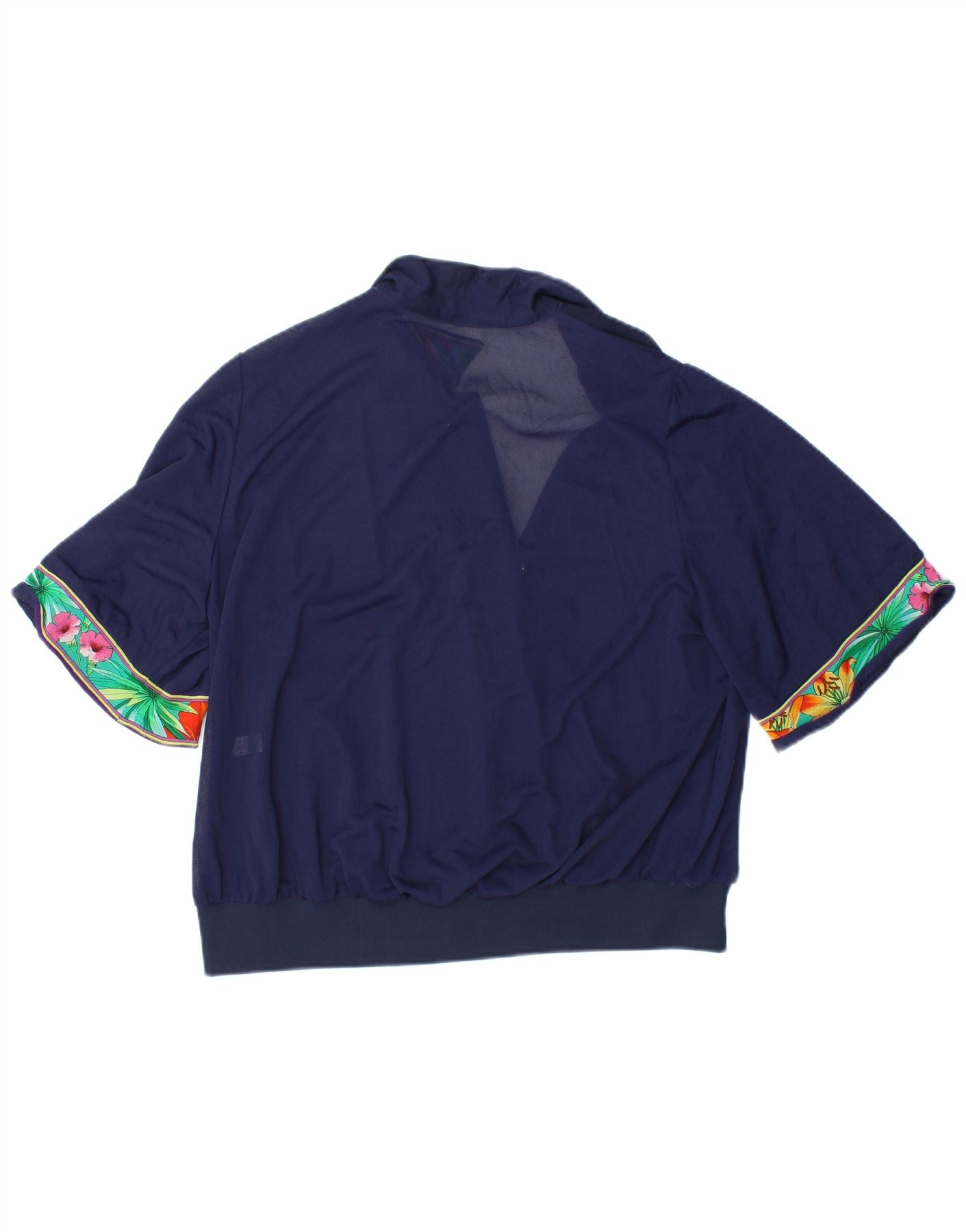 VINTAGE Blusa corta para mujer Top IT 48 XL Azul marino Floral