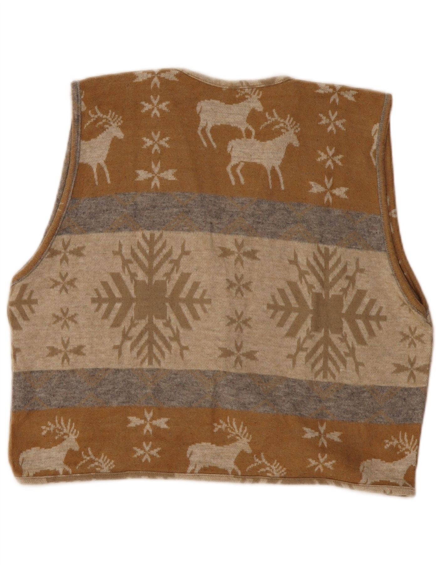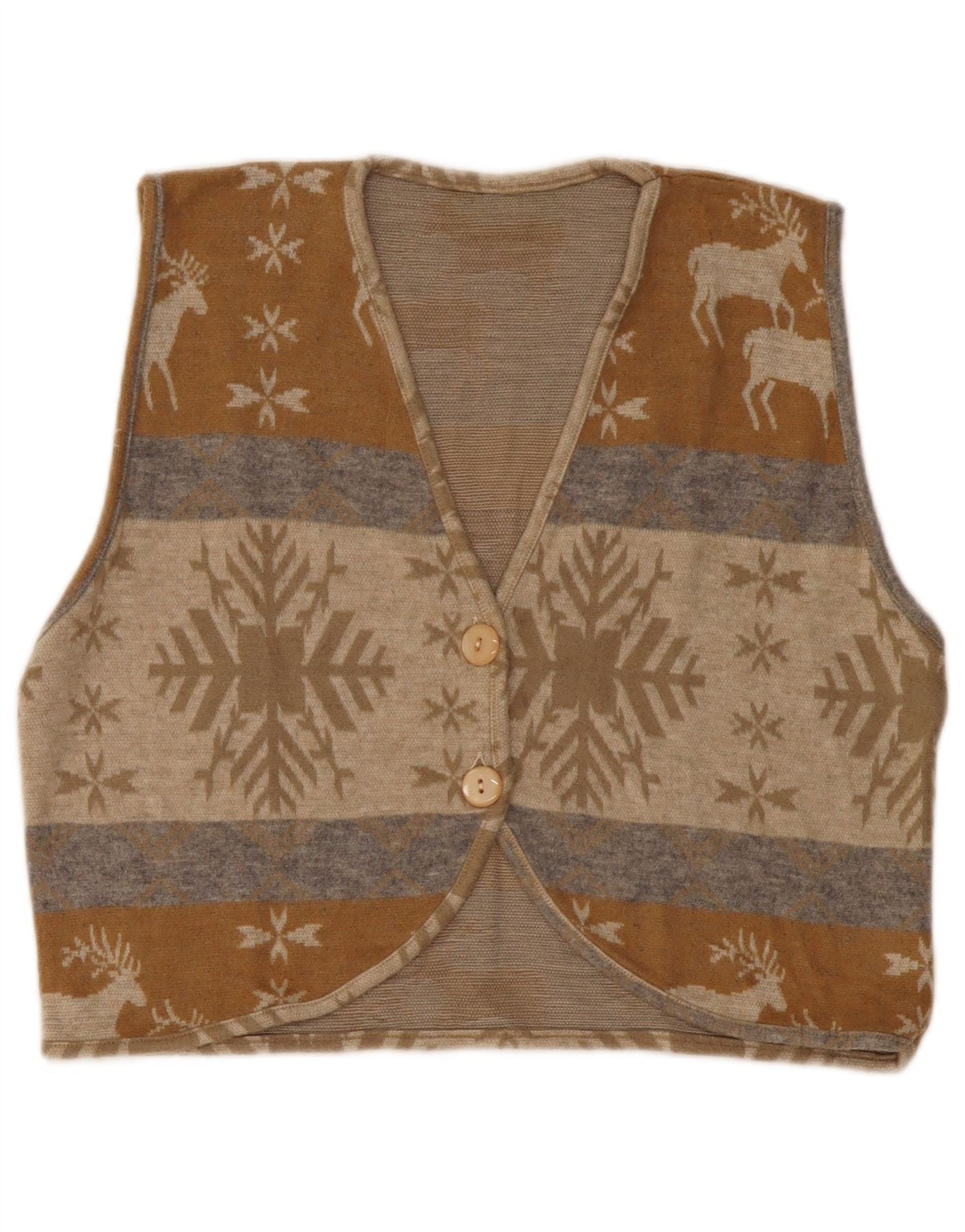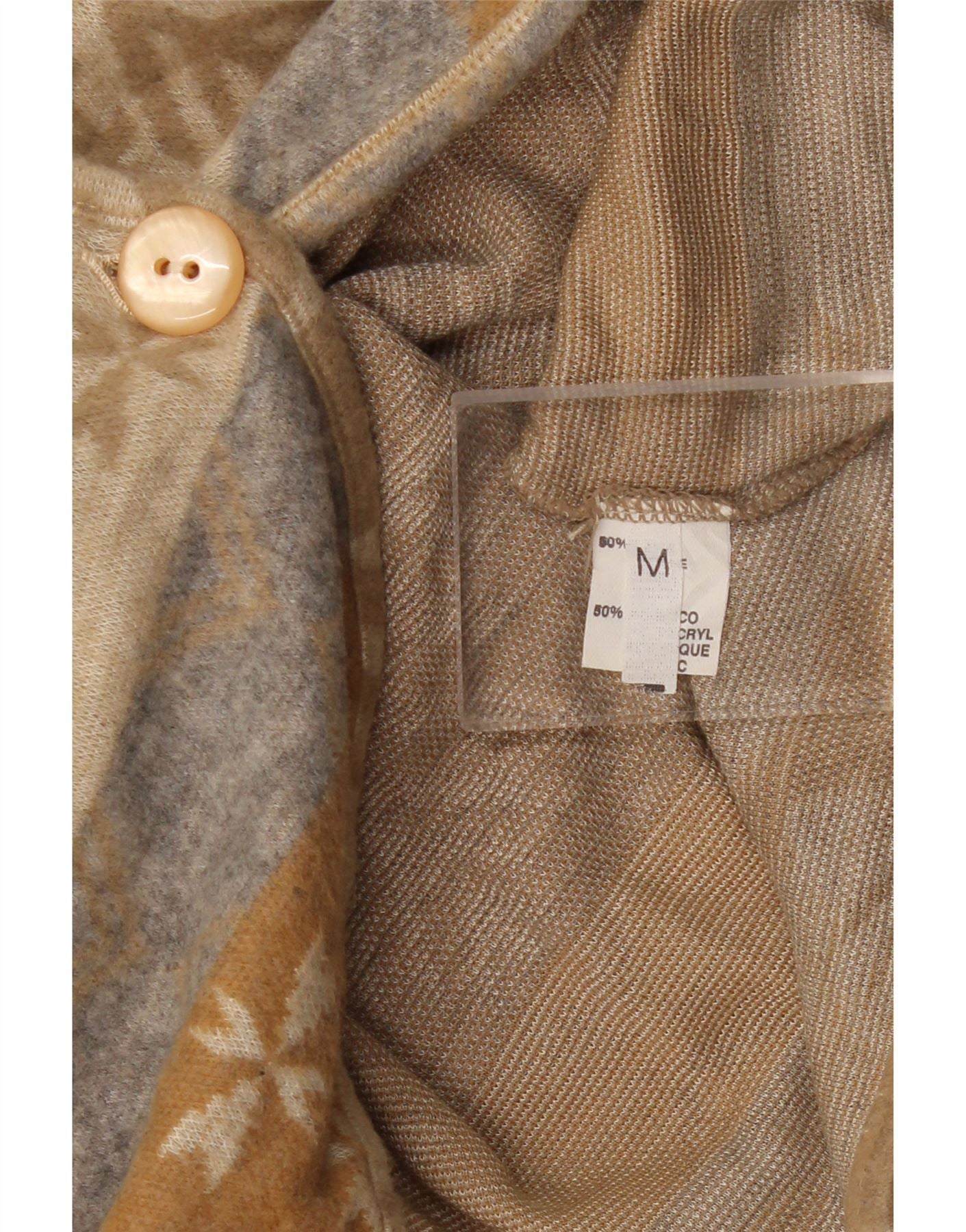 VINTAGE Mujer Crop Cardigan Suéter Reino Unido 14 Medio Beige Fair Isle