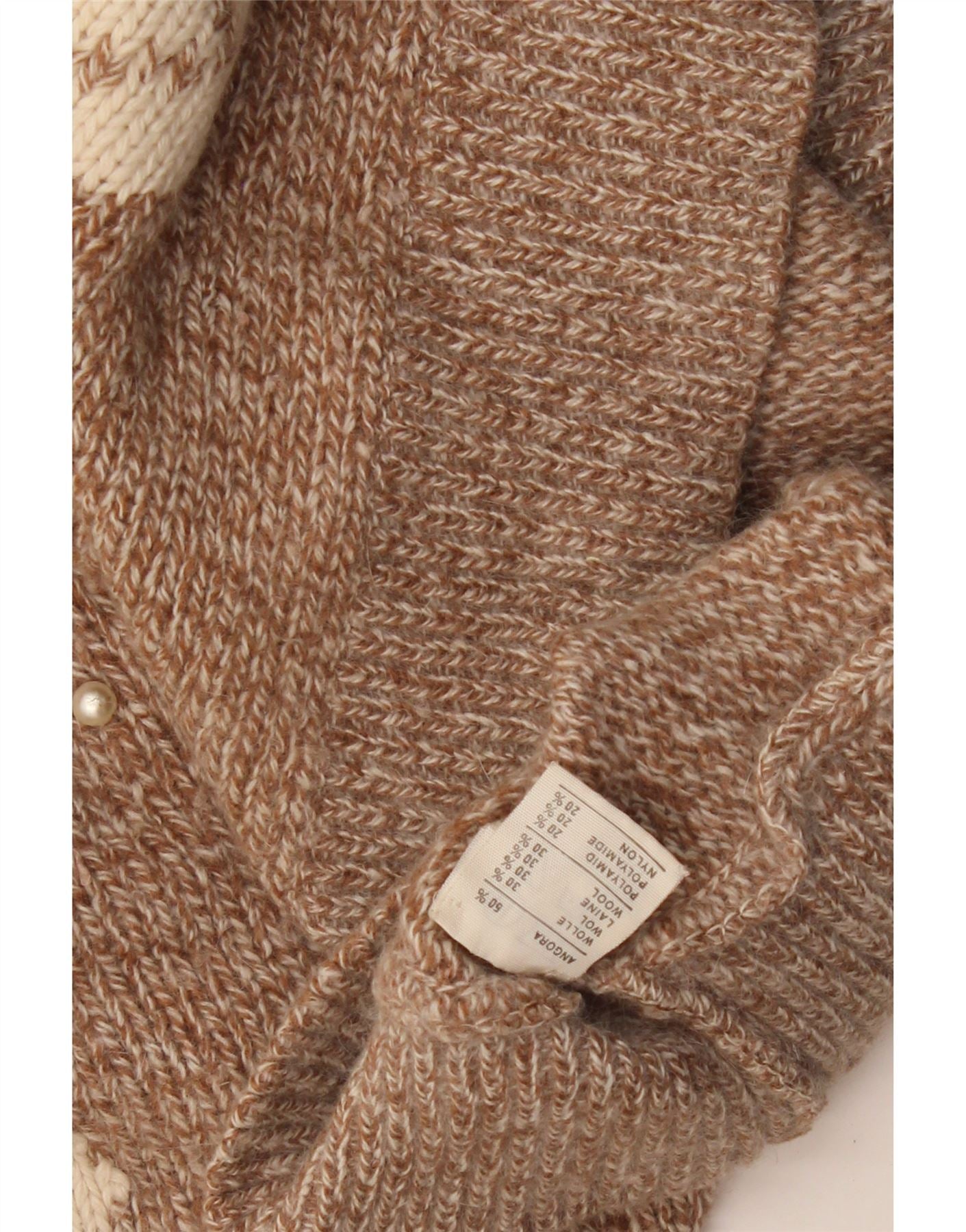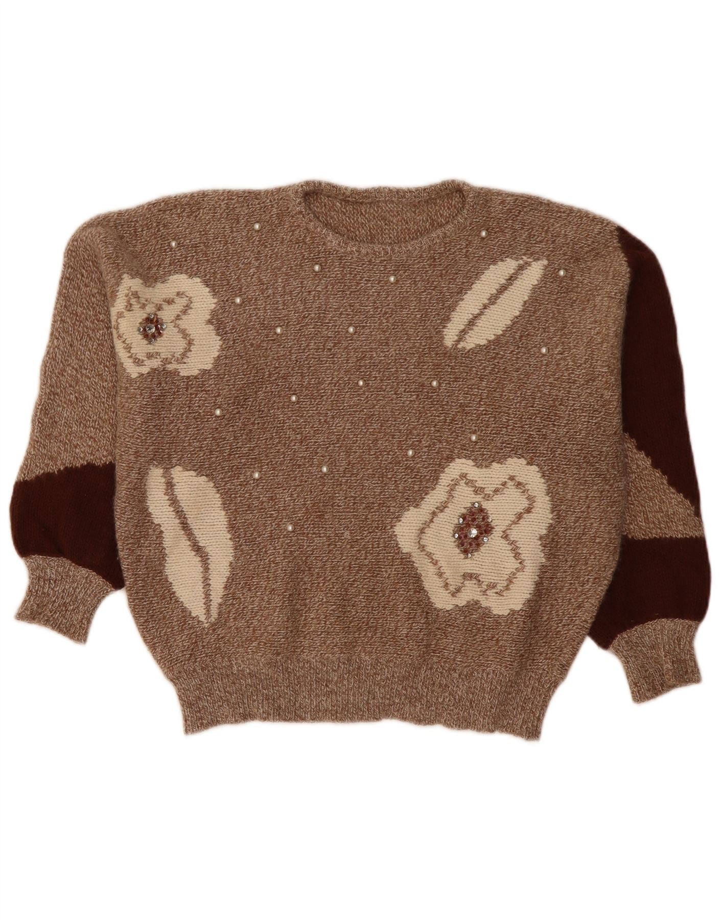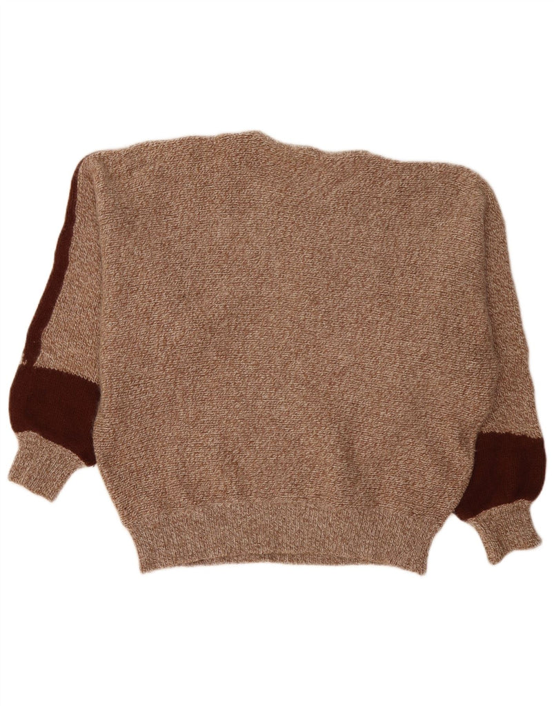 VINTAGE Mujer Crop Crew Neck Jumper Suéter Reino Unido 14 Marrón Medio Flecked