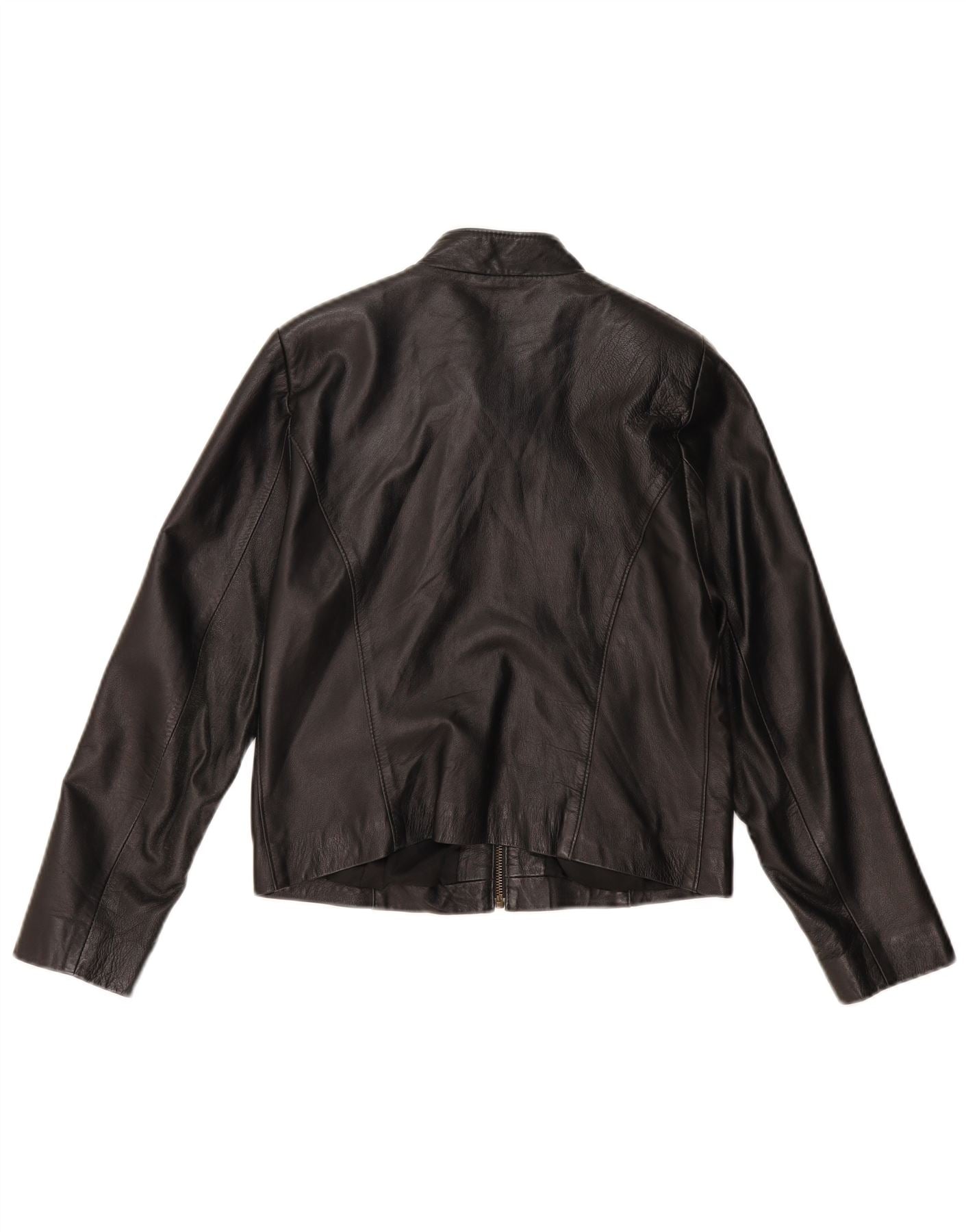 VINTAGE Chaqueta de cuero crop para mujer Reino Unido 14 Cuero negro mediano