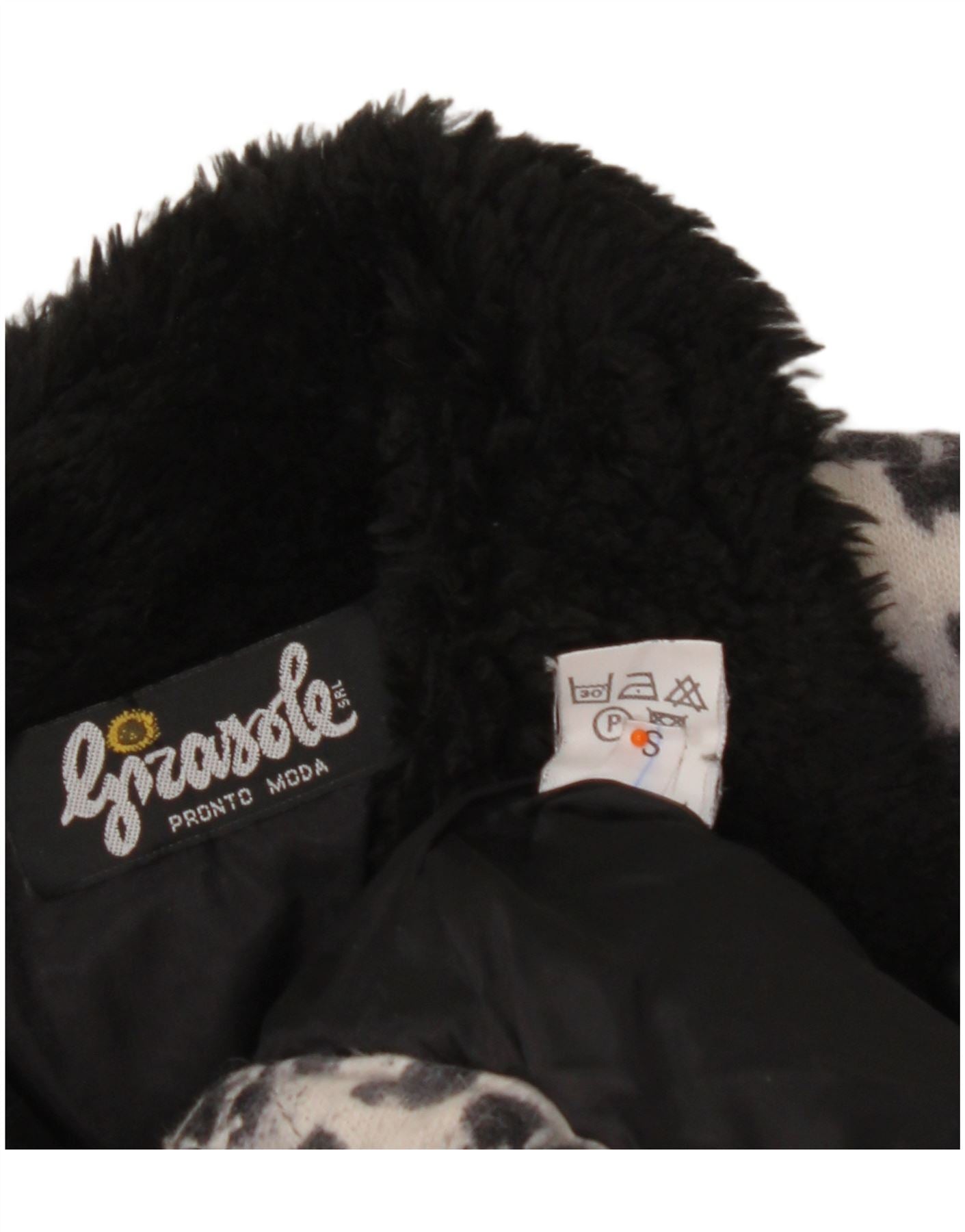 VINTAGE Mujer Crop Oversize Bomber Chaqueta Reino Unido 10 Pequeño Gris Animal Print