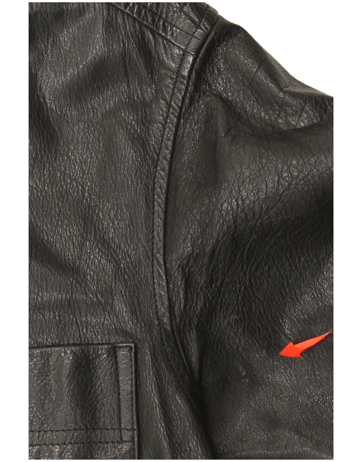 Vintage mujer crop chaqueta de cuero de gran tamaño Reino Unido 10 cuero negro pequeño