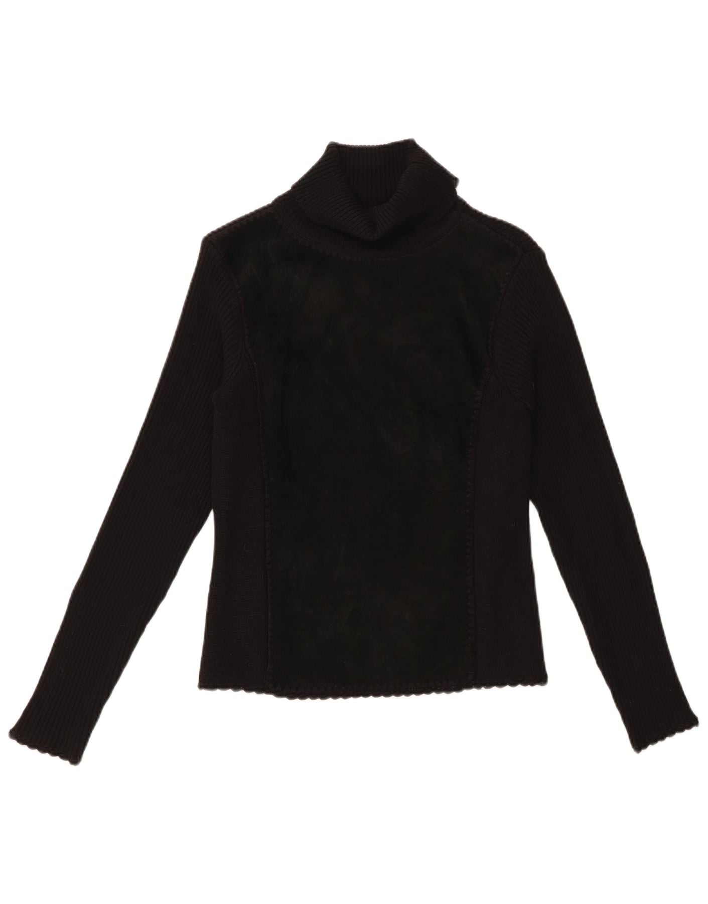 VINTAGE Mujer Crop Roll Neck Jumper Suéter Reino Unido 8 Pequeño Negro
