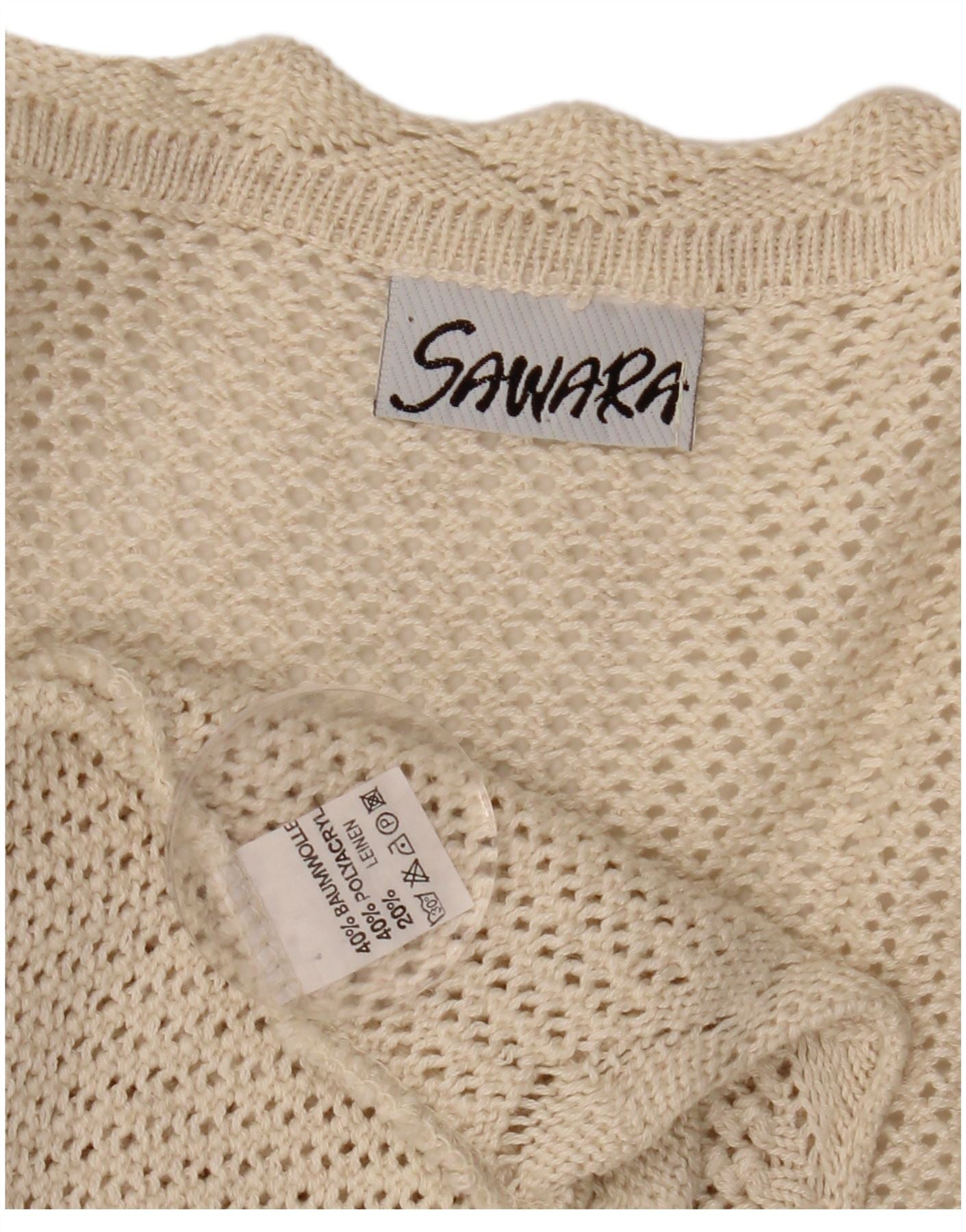 VINTAGE Mujer Crop Sin Mangas Crochet Cardigan Suéter Reino Unido 14 Grande Beige