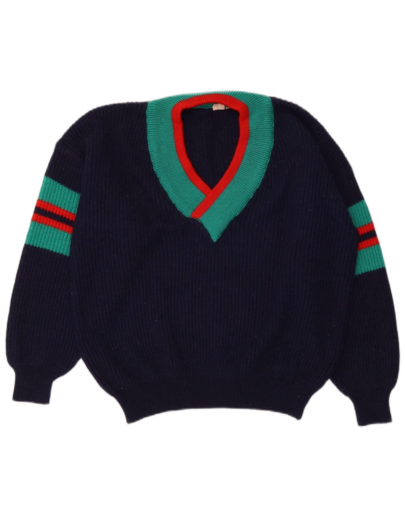 Home > De las mujeres > Ropa Depop > VINTAGE Mujer Crop V-Cuello Jersey Jersey IT 48/50 XL Azul Marino Rayas