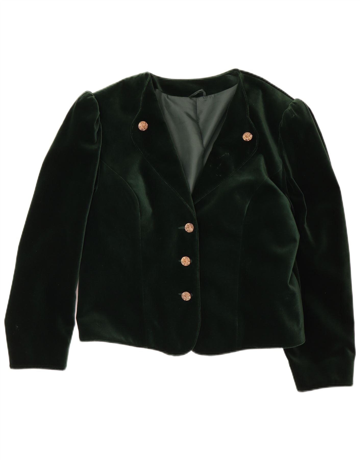Vintage mujer crop terciopelo 3 botones Blazer chaqueta EU 40 algodón verde medio