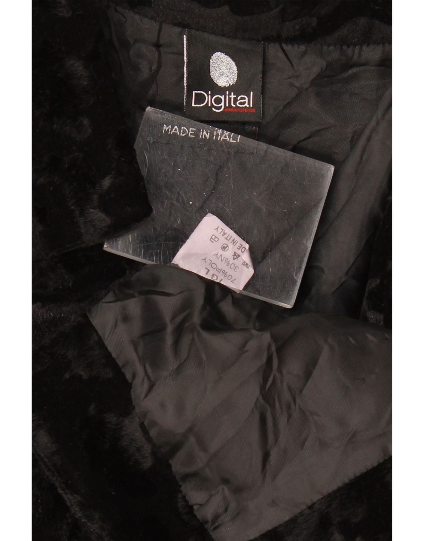 VINTAGE Chaqueta Bolero de piel sintética para mujer Reino Unido 14 Poliéster negro grande