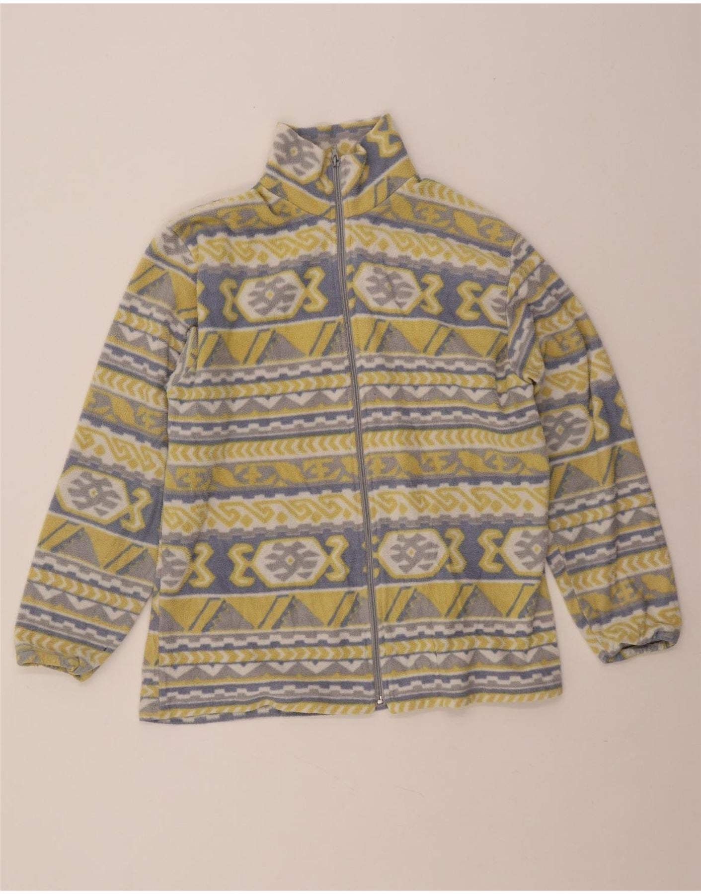 Vintage mujer chaqueta polar Reino Unido 20 2XL amarillo geométrico