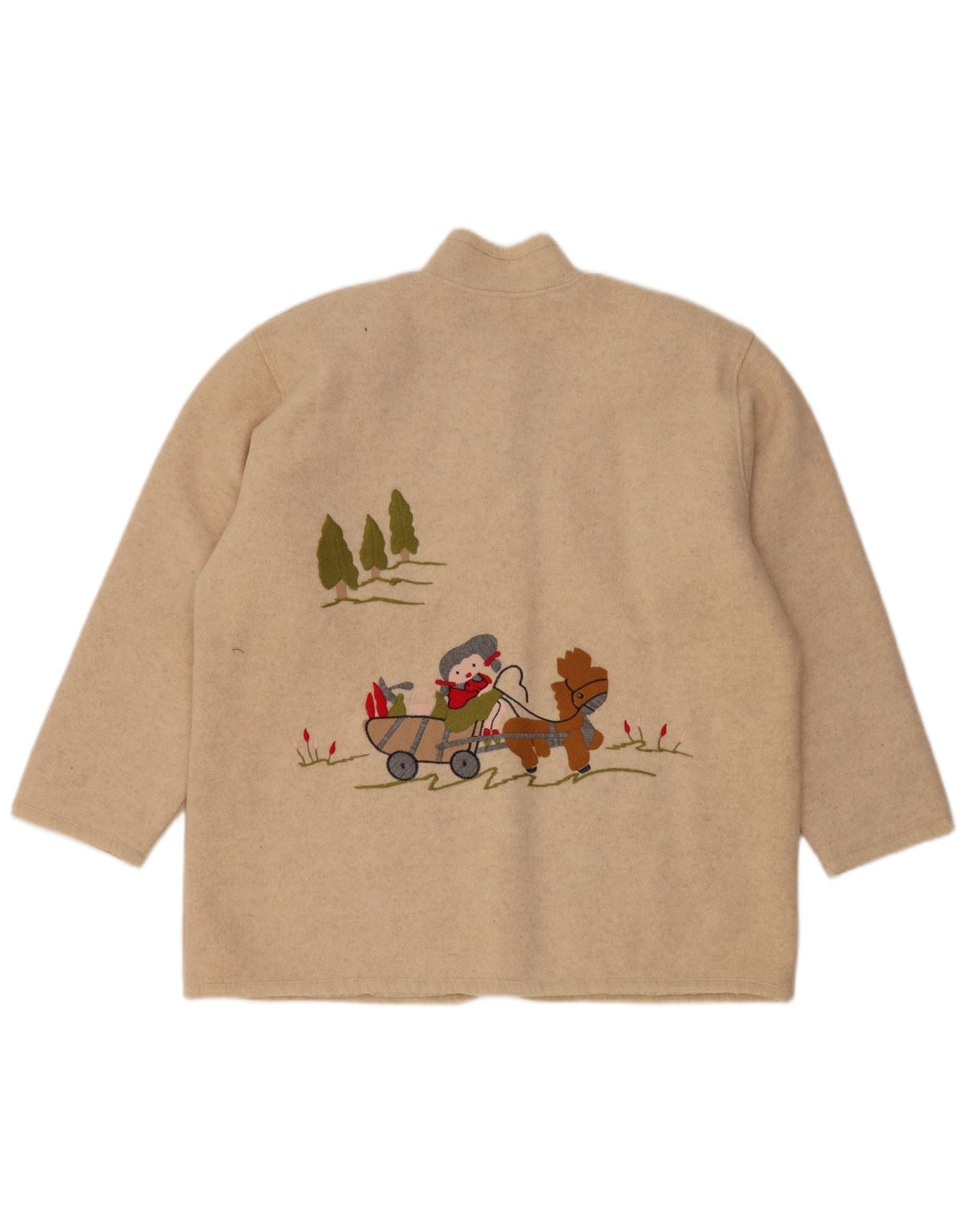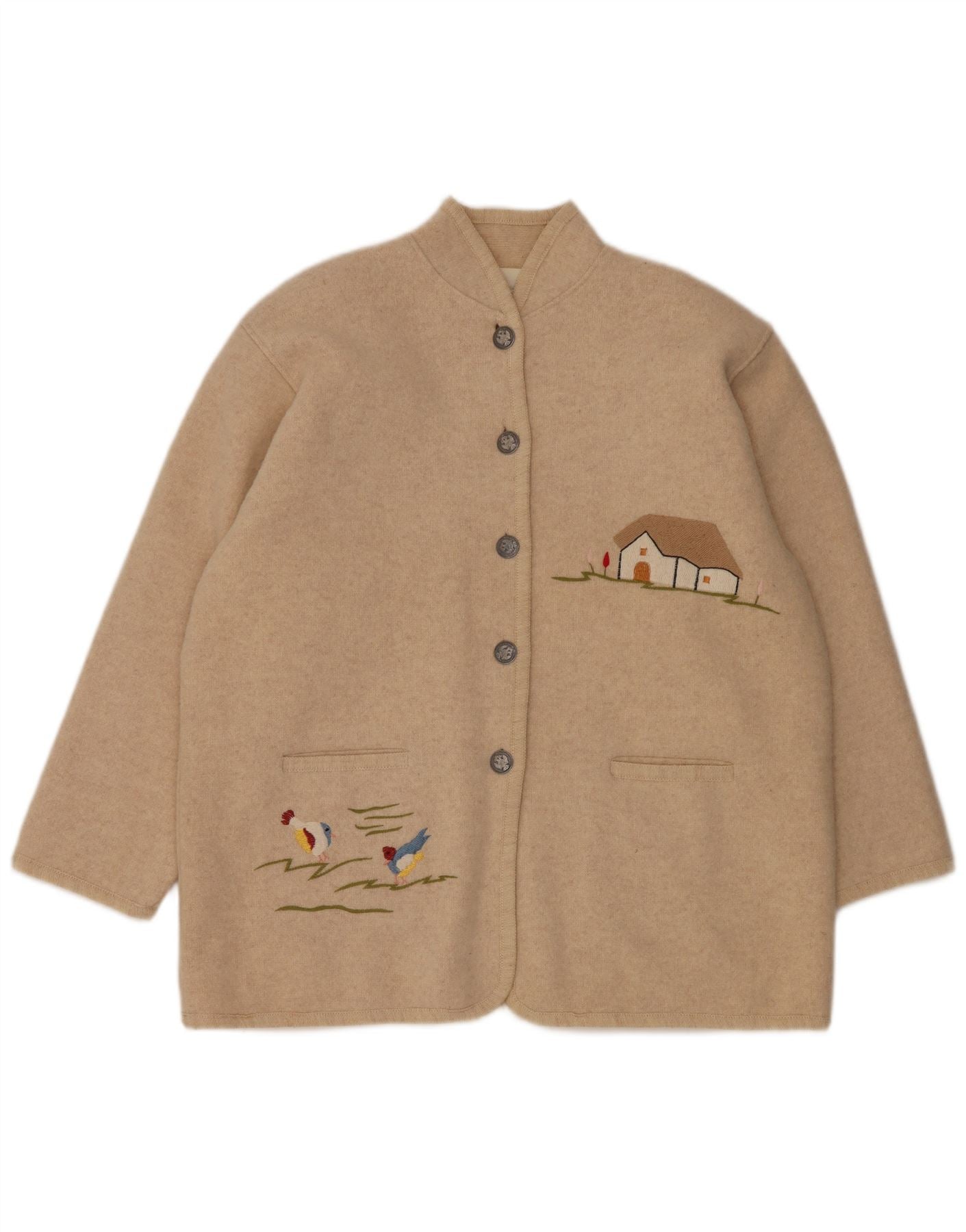 VINTAGE Mujer Gráfico 5 Botón Blazer Chaqueta Reino Unido 14 Grande Beige