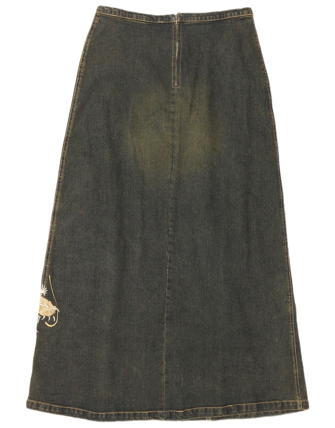 VINTAGE Falda de mezclilla gráfica para mujer Reino Unido 12 Medio W30 Algodón azul