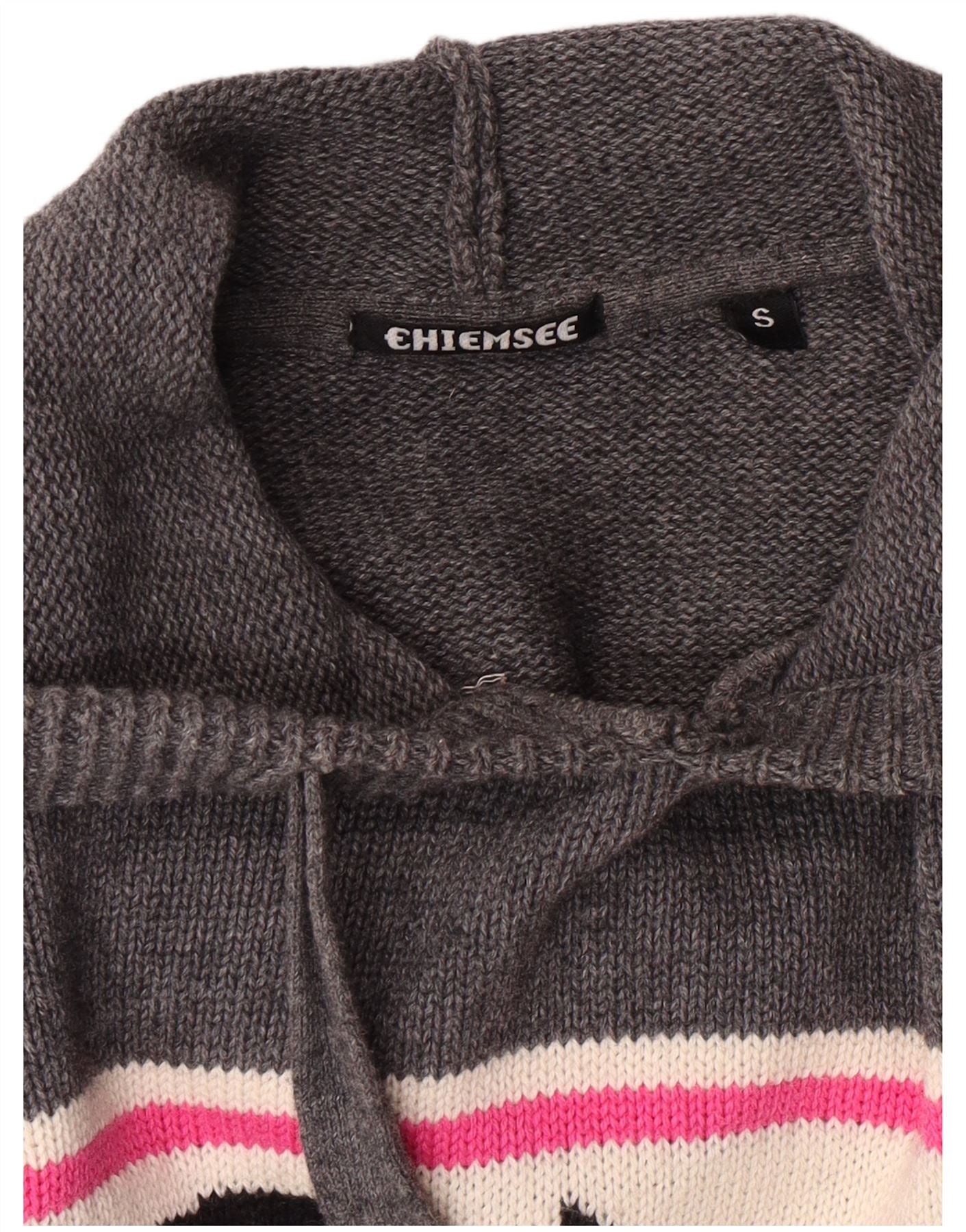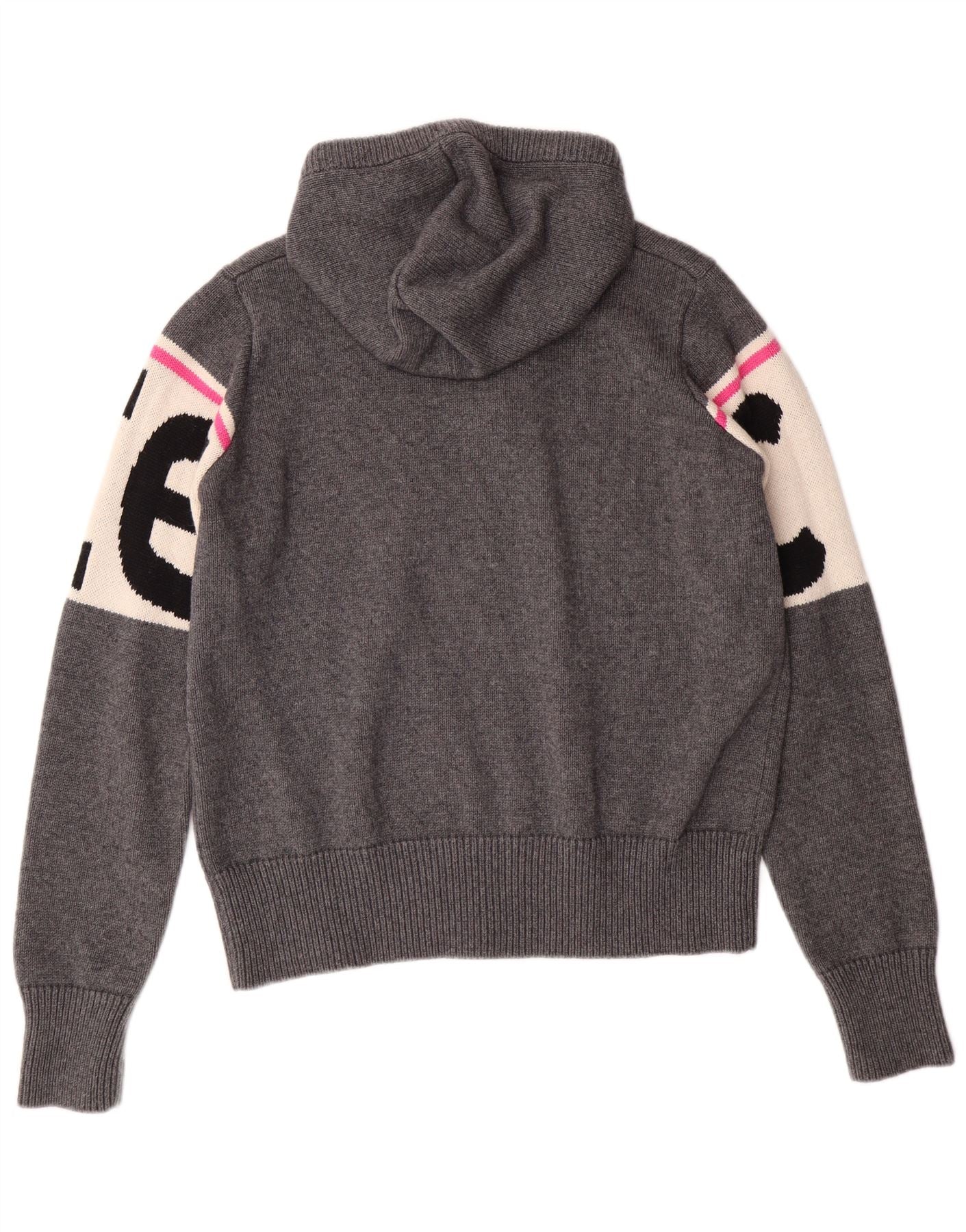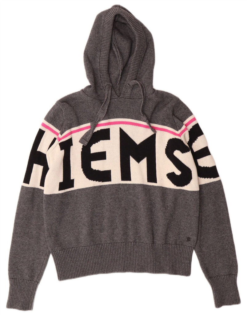 VINTAGE suéter de jersey con capucha gráfico para mujer Reino Unido 10 Bloque de color gris pequeño