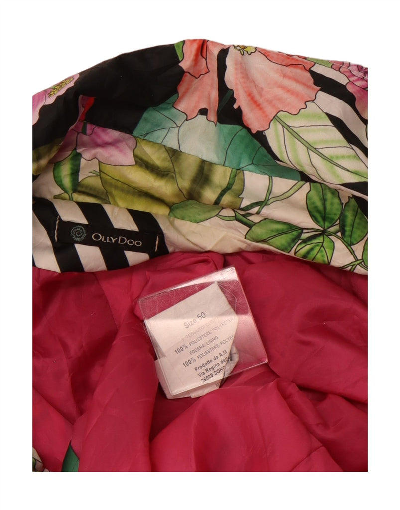 VINTAGE Womens Graphic Trench Coat IT 50 XL Multicoloured Floral Polyester