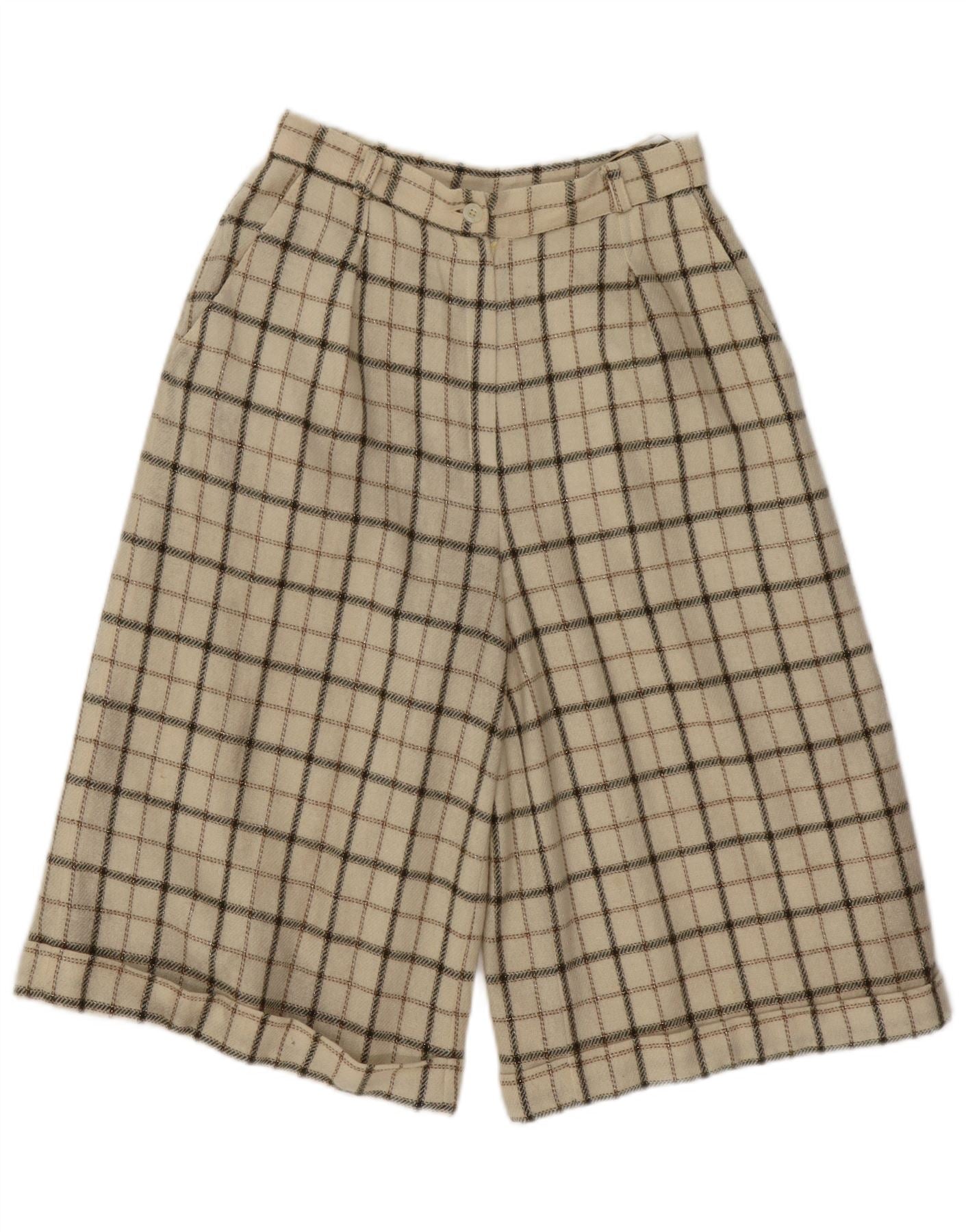 VINTAGE Pantalones cortos casuales de cintura alta para mujer Medio W26 Lana a cuadros beige