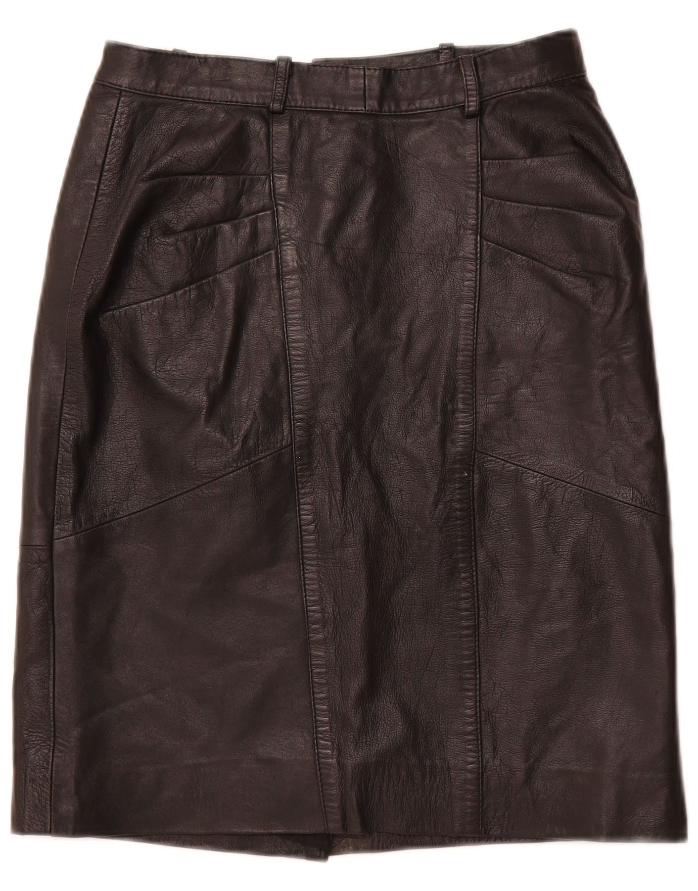 VINTAGE Falda de cuero de cintura alta para mujer IT 48 XL W28 Cuero negro