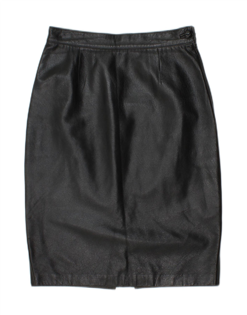 VINTAGE Womens High Waist Leather Skirt UK 8 Small W23 Black Leather