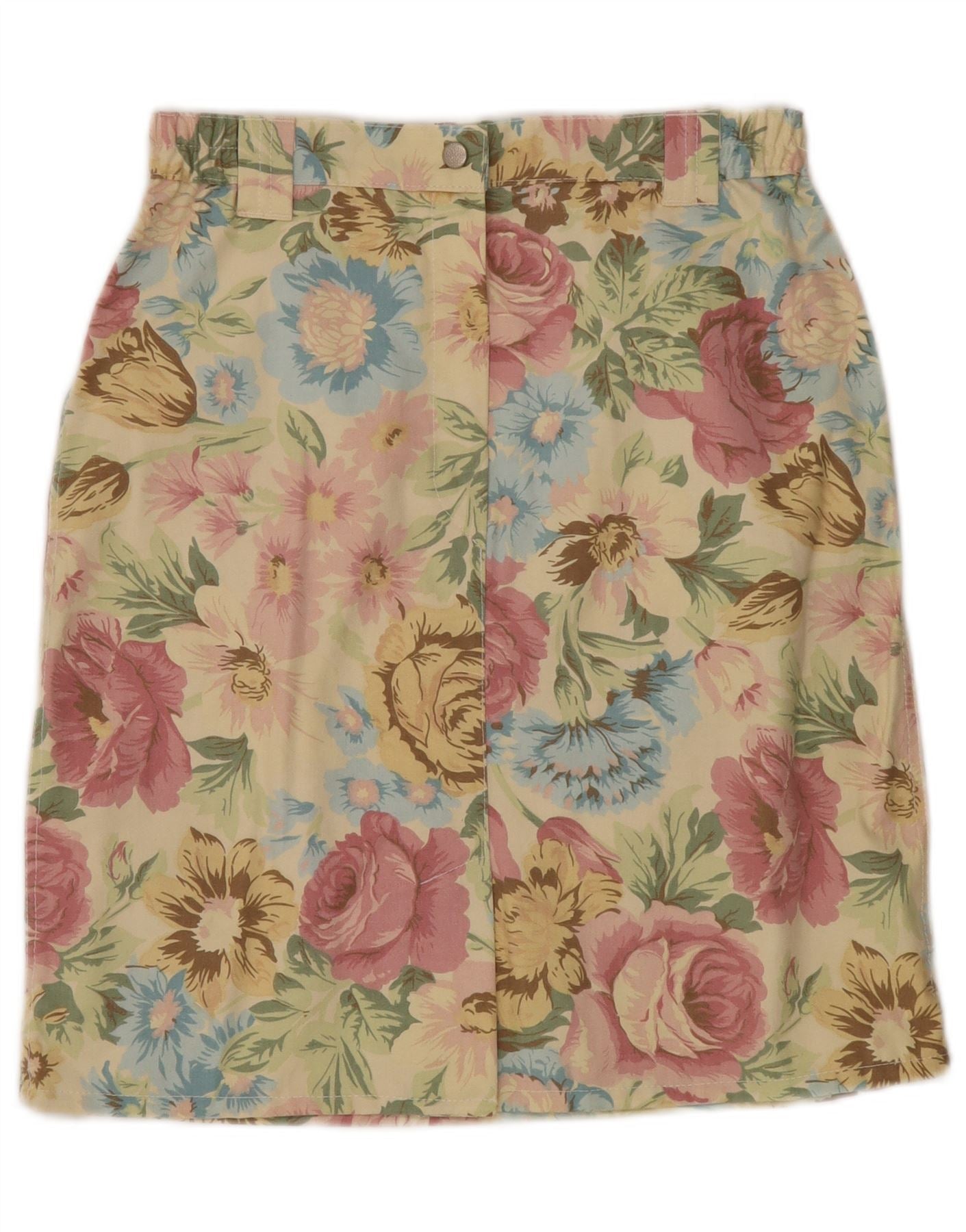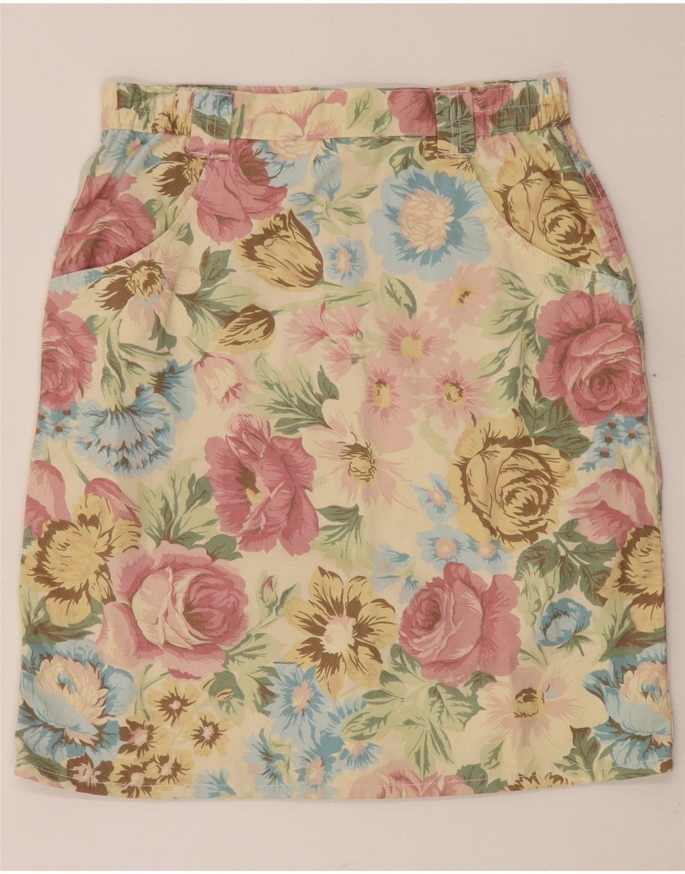 VINTAGE Falda recta de cintura alta para mujer W30 Floral amarillo medio