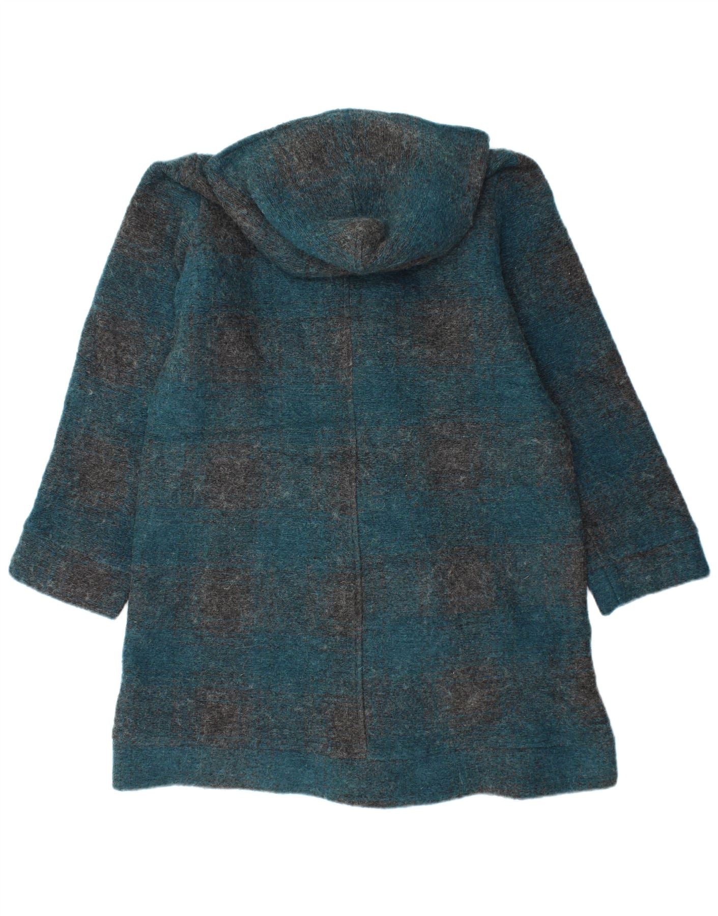 Vintage mujer con capucha Duffle abrigo Reino Unido 16 gran cheque turquesa