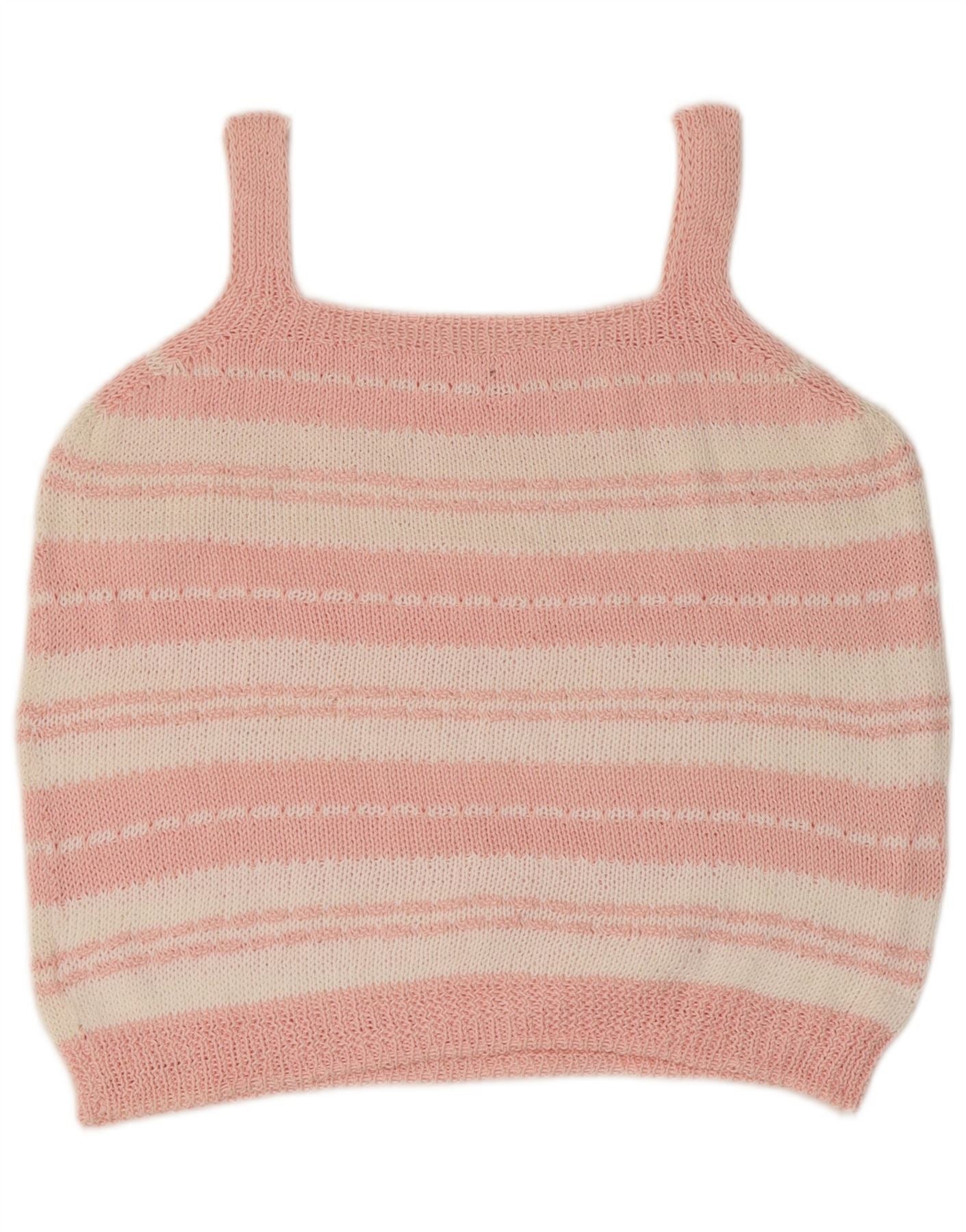 VINTAGE Mujer Punto Cami Top Reino Unido 14 Rayas Rosas Grandes