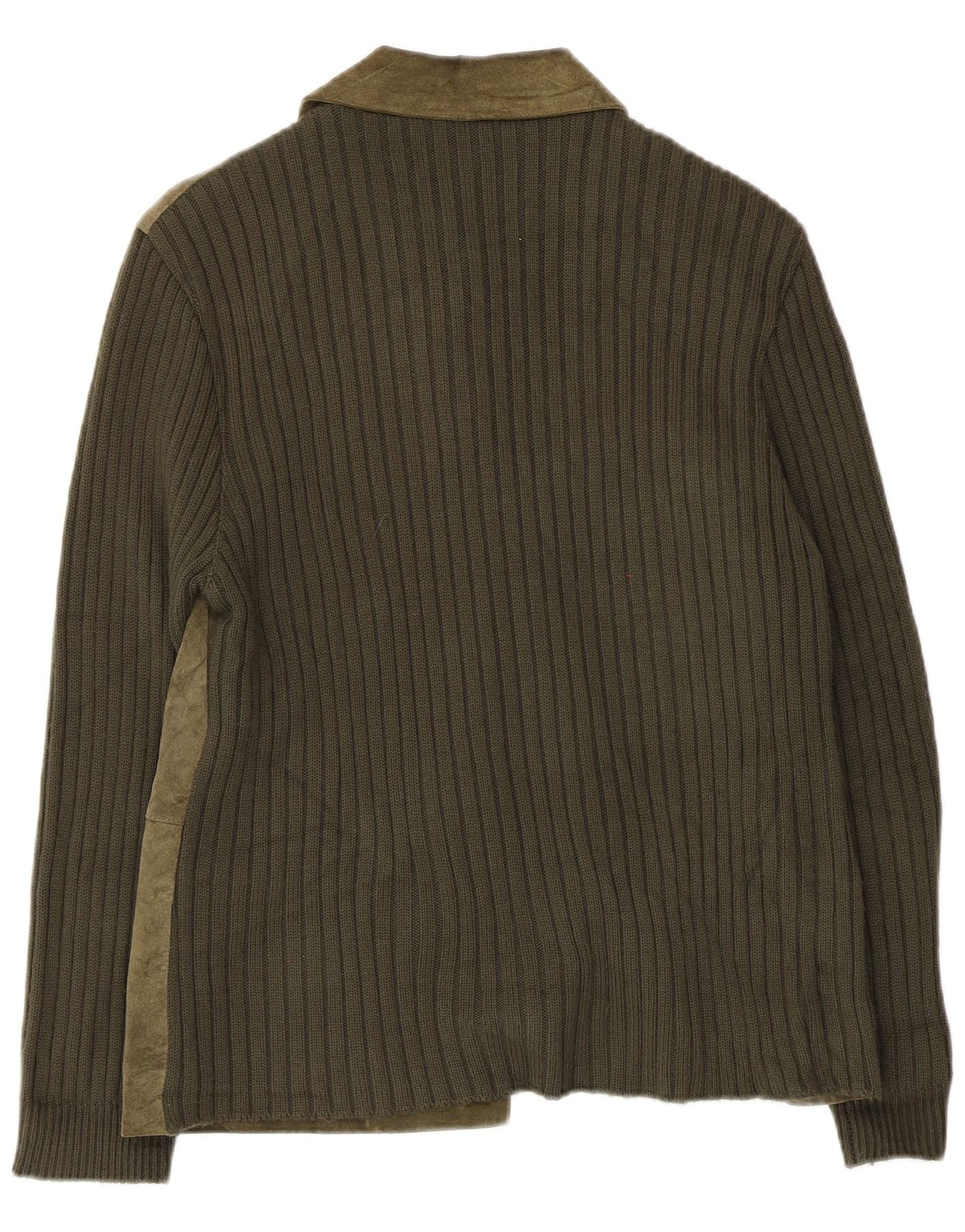 Vintage mujer punto ante chaqueta Reino Unido 14 cuero verde medio