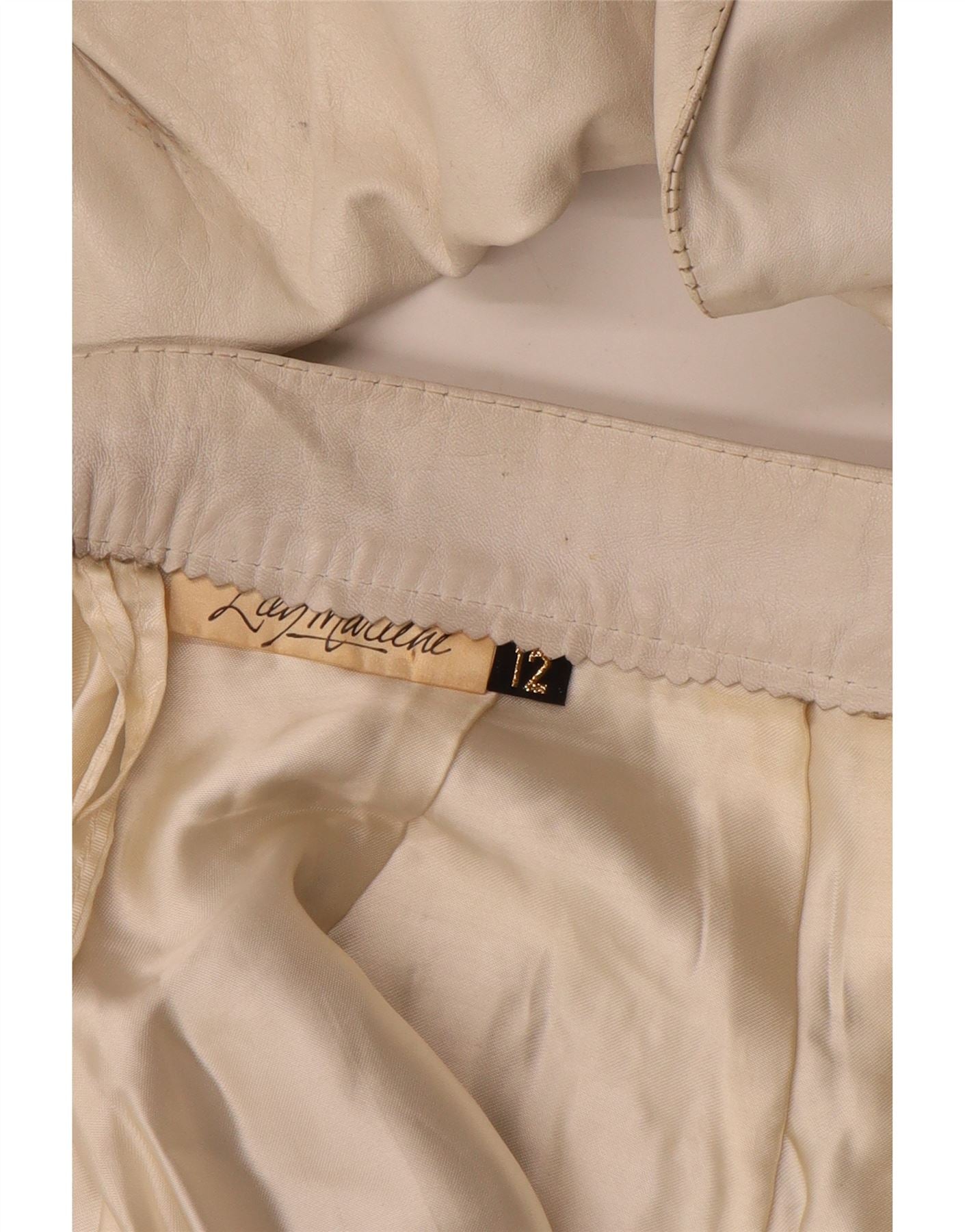 Vintage mujer cuero 2 piezas falda conjunto Reino Unido 12 medio W26 blanco apagado