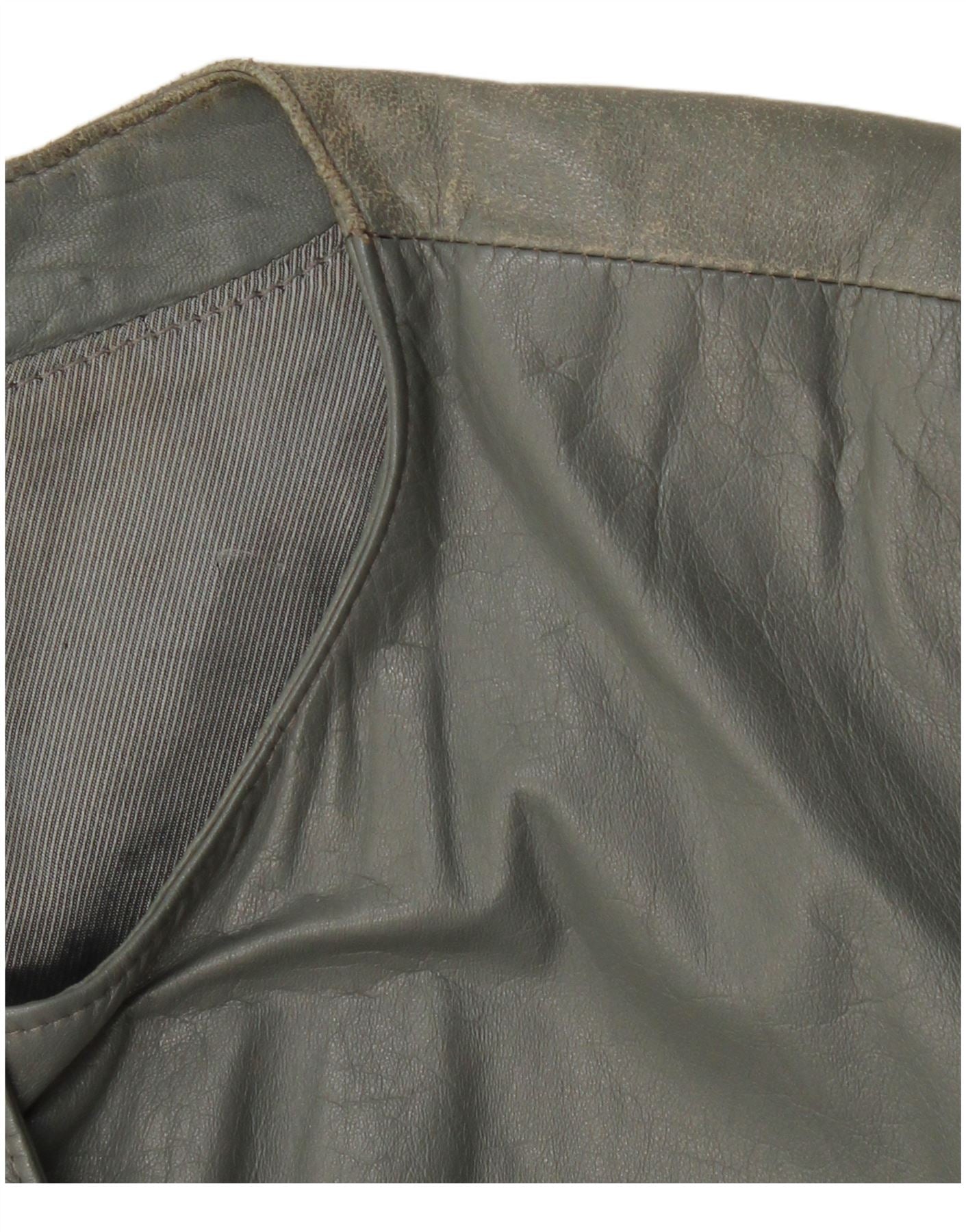 VINTAGE Chaqueta bomber de cuero para mujer Reino Unido 12 Cuero gris medio