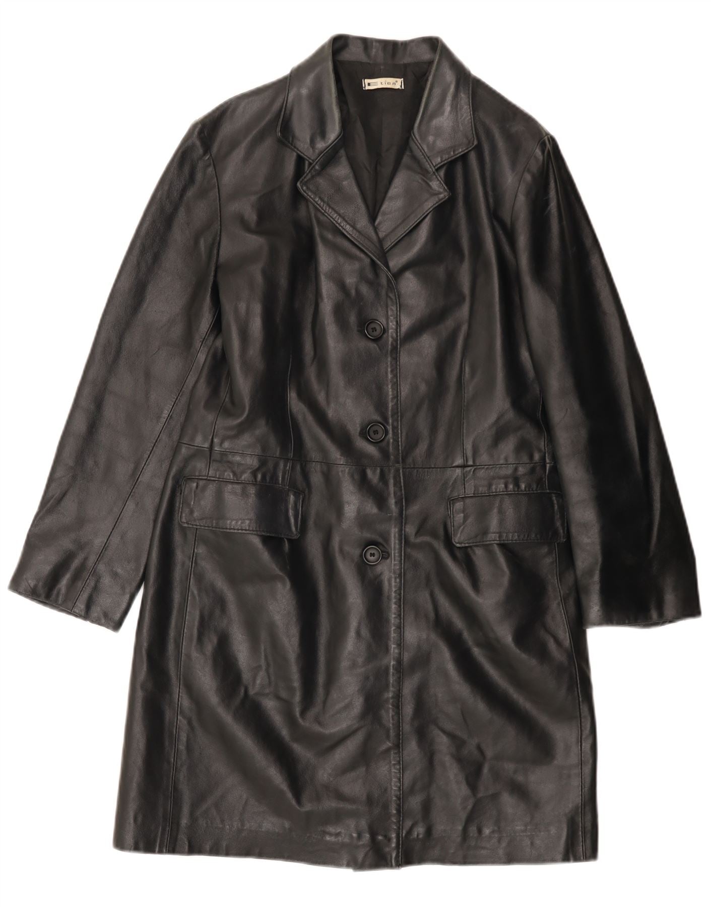 VINTAGE Abrigo de cuero para mujer IT 46 Cuero negro grande