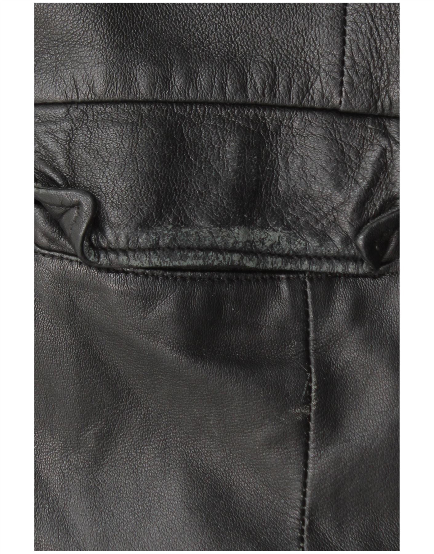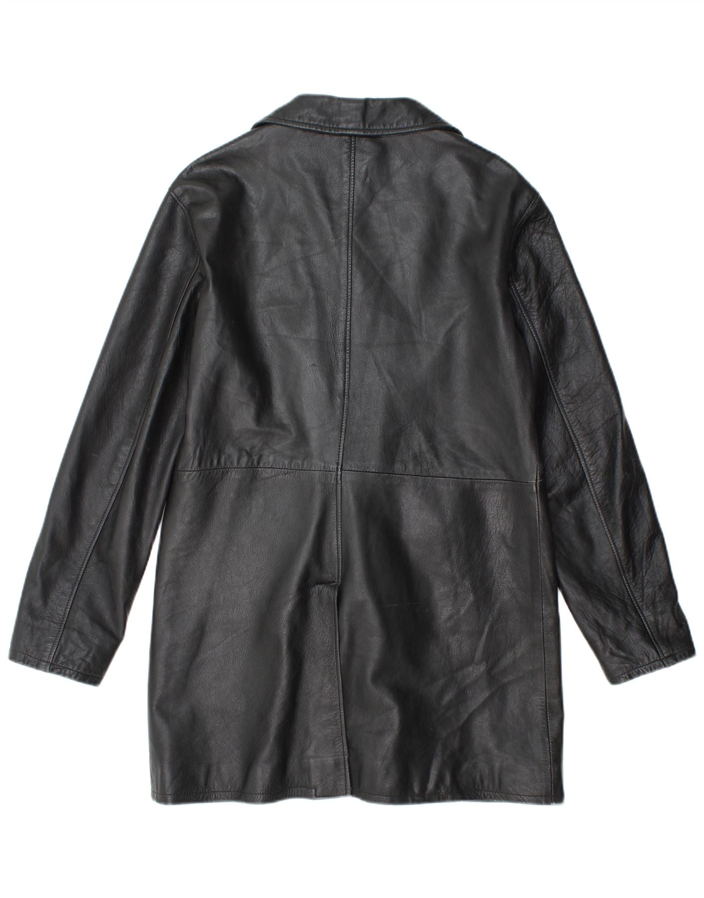 VINTAGE Abrigo de cuero para mujer Reino Unido 18 XL Cuero negro