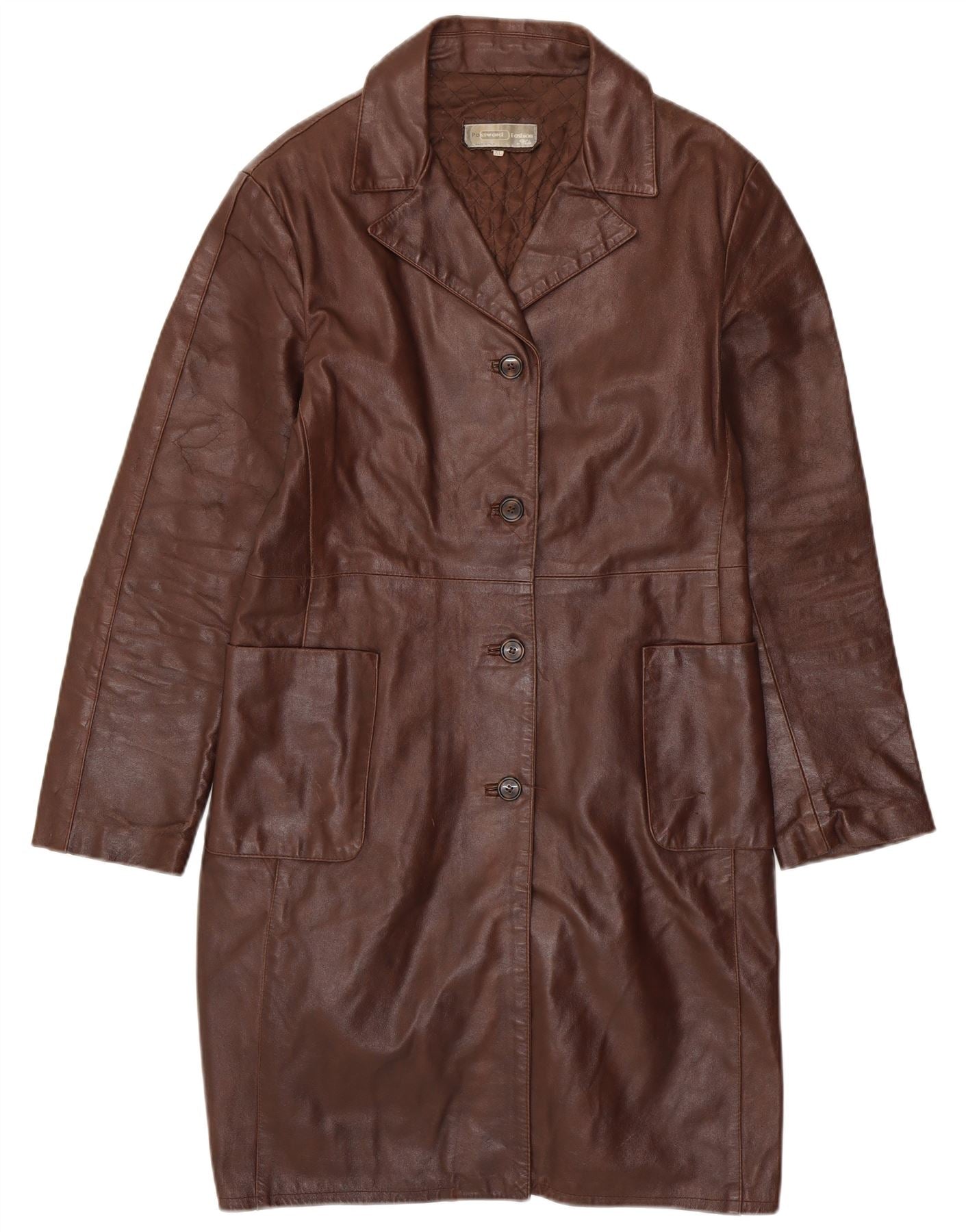 VINTAGE Abrigo de cuero para mujer Reino Unido 18 XL Cuero marrón