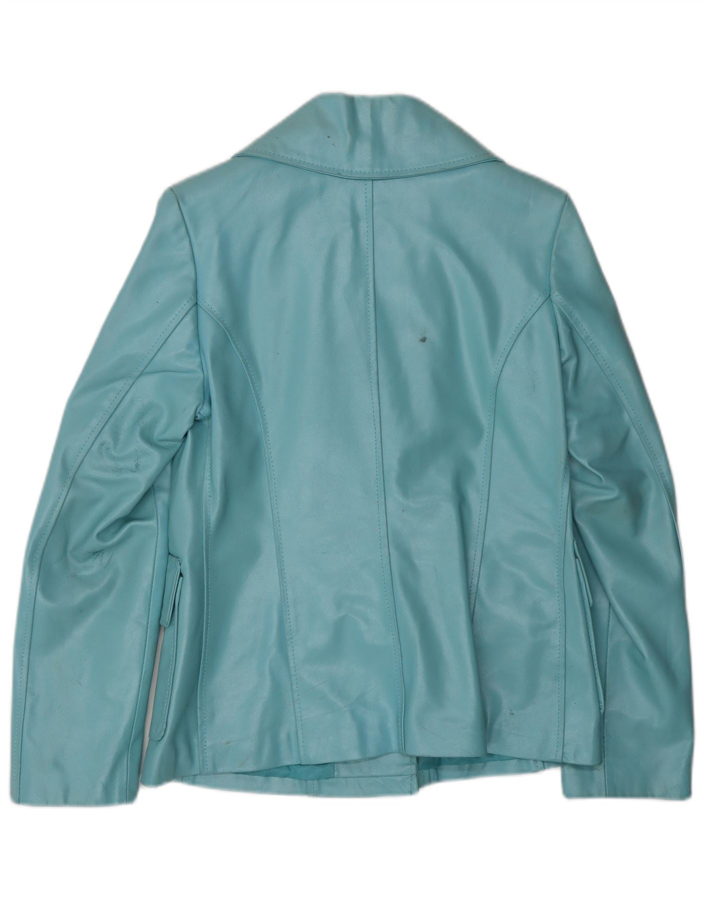 VINTAGE Chaqueta de cuero para mujer Reino Unido 10 Cuero azul pequeño