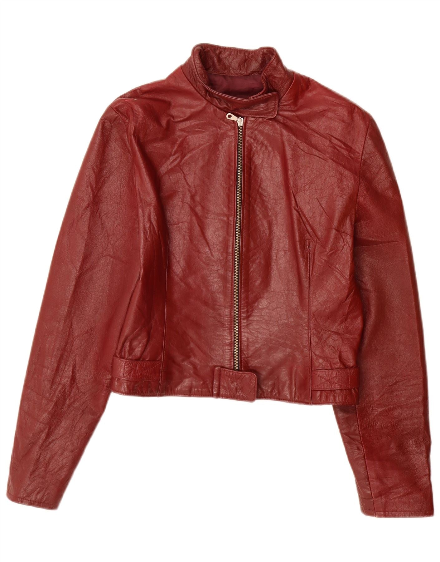VINTAGE Chaqueta de cuero para mujer Reino Unido 10 Pequeño cuero burdeos