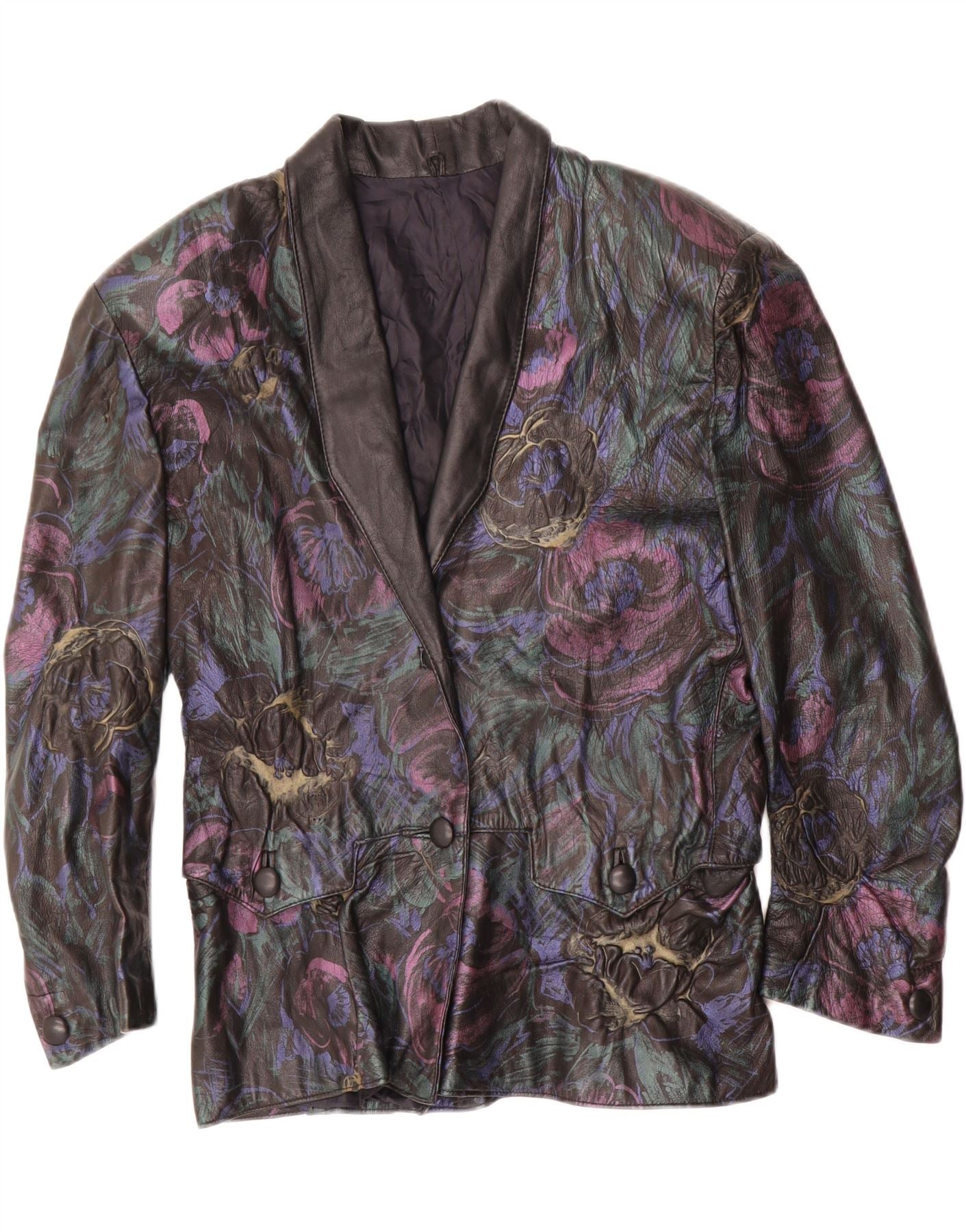 VINTAGE Chaqueta de cuero para mujer Reino Unido 16 Cuero floral negro grande