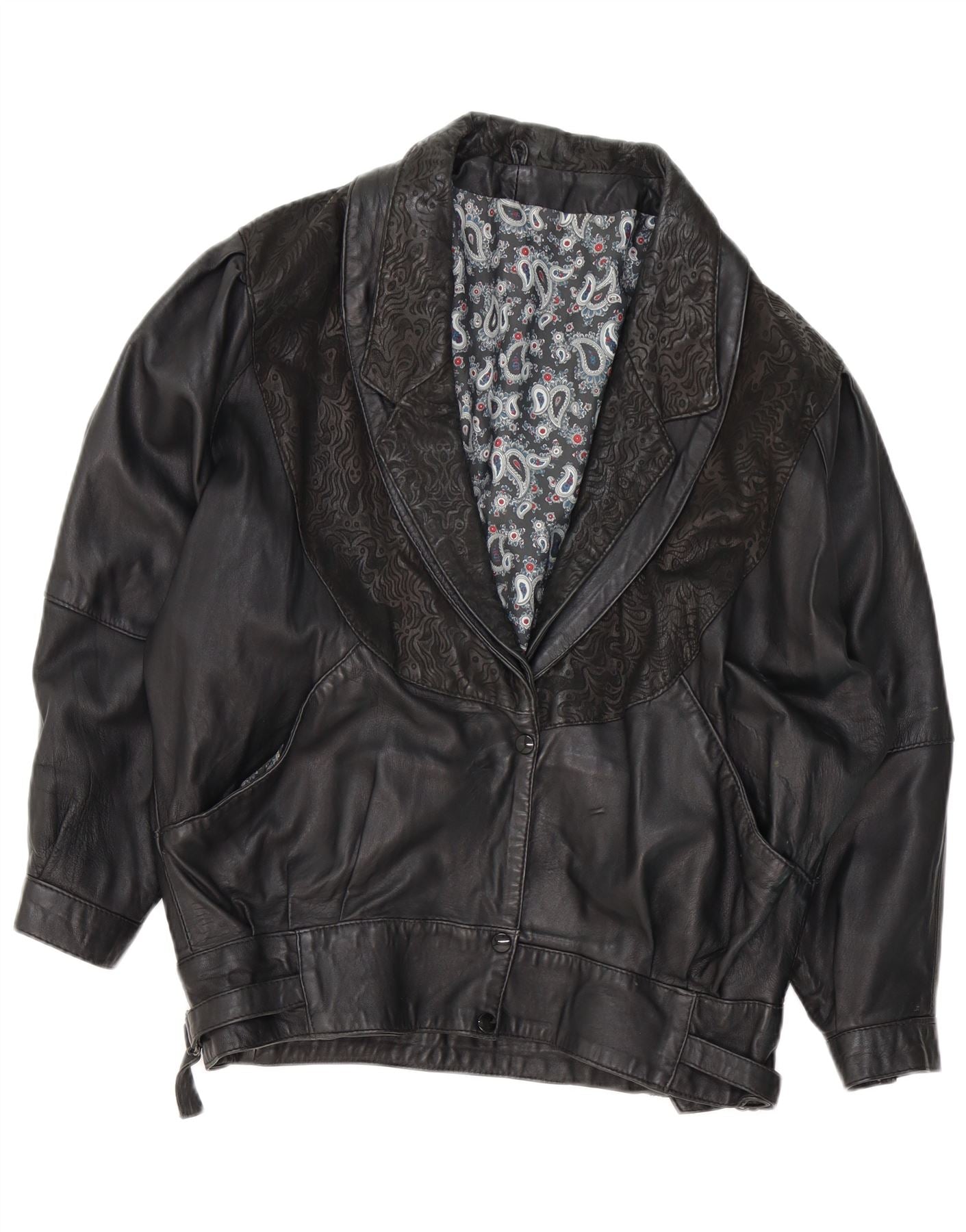 VINTAGE Chaqueta de cuero para mujer Reino Unido 18 XL Negro Paisley