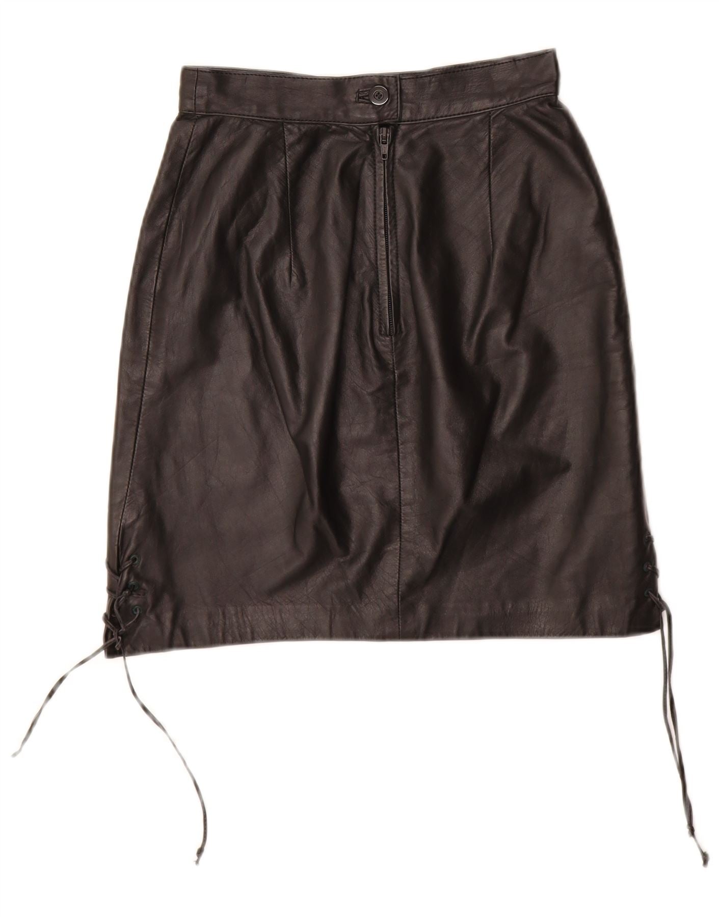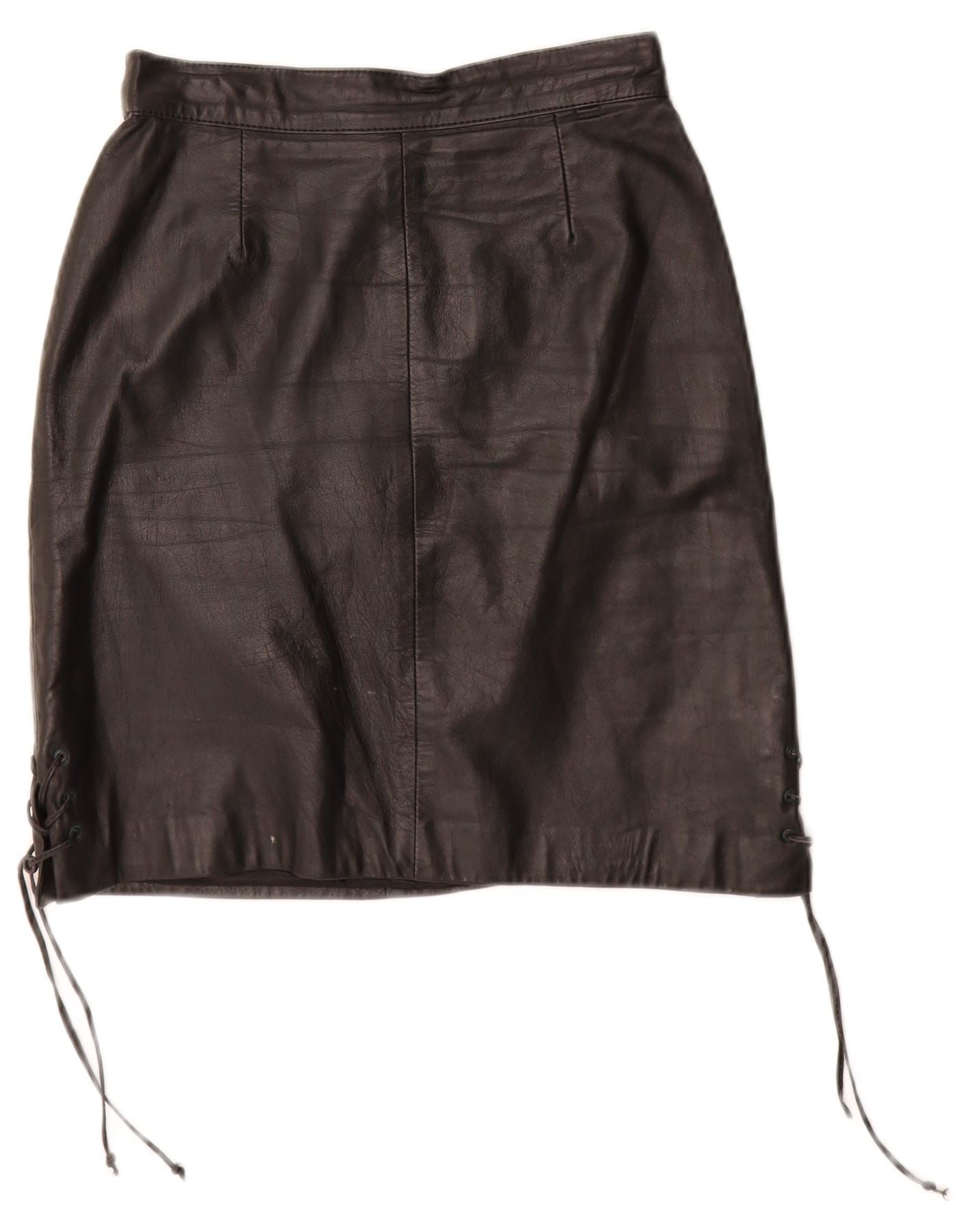 VINTAGE Falda de cuero para mujer EU 34 XS W24 Cuero negro