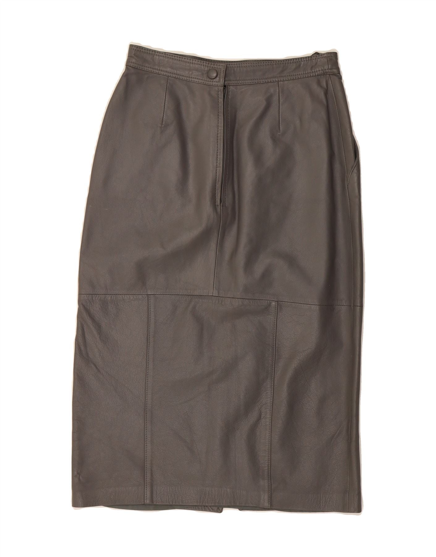 VINTAGE Womens Leather Skirt EU 38 Medium W28 Grey Leather