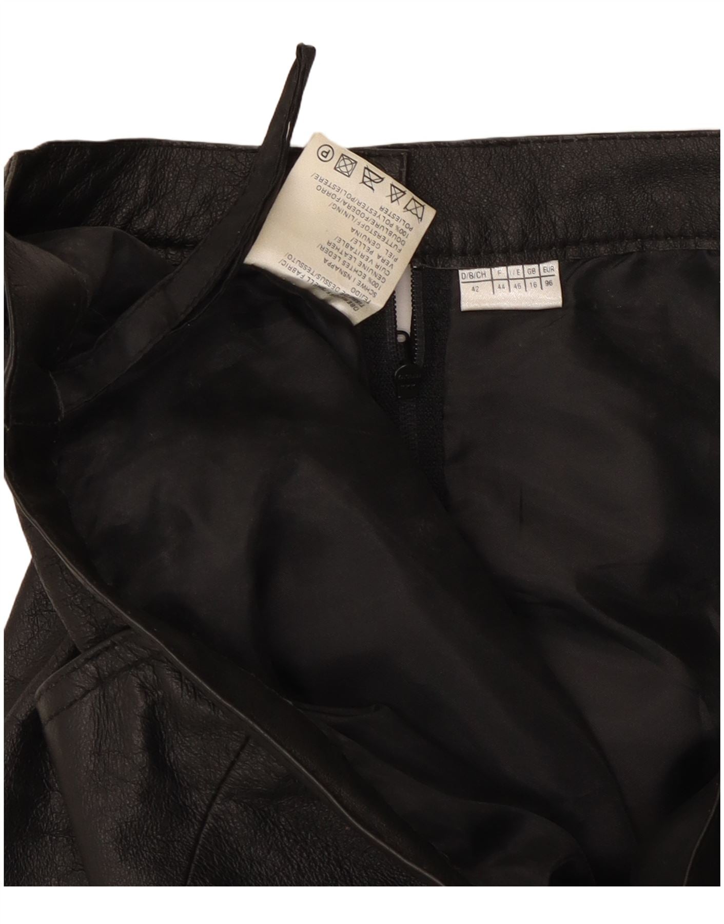 Vintage mujer falda de cuero Reino Unido 16 grande W30 cuero negro