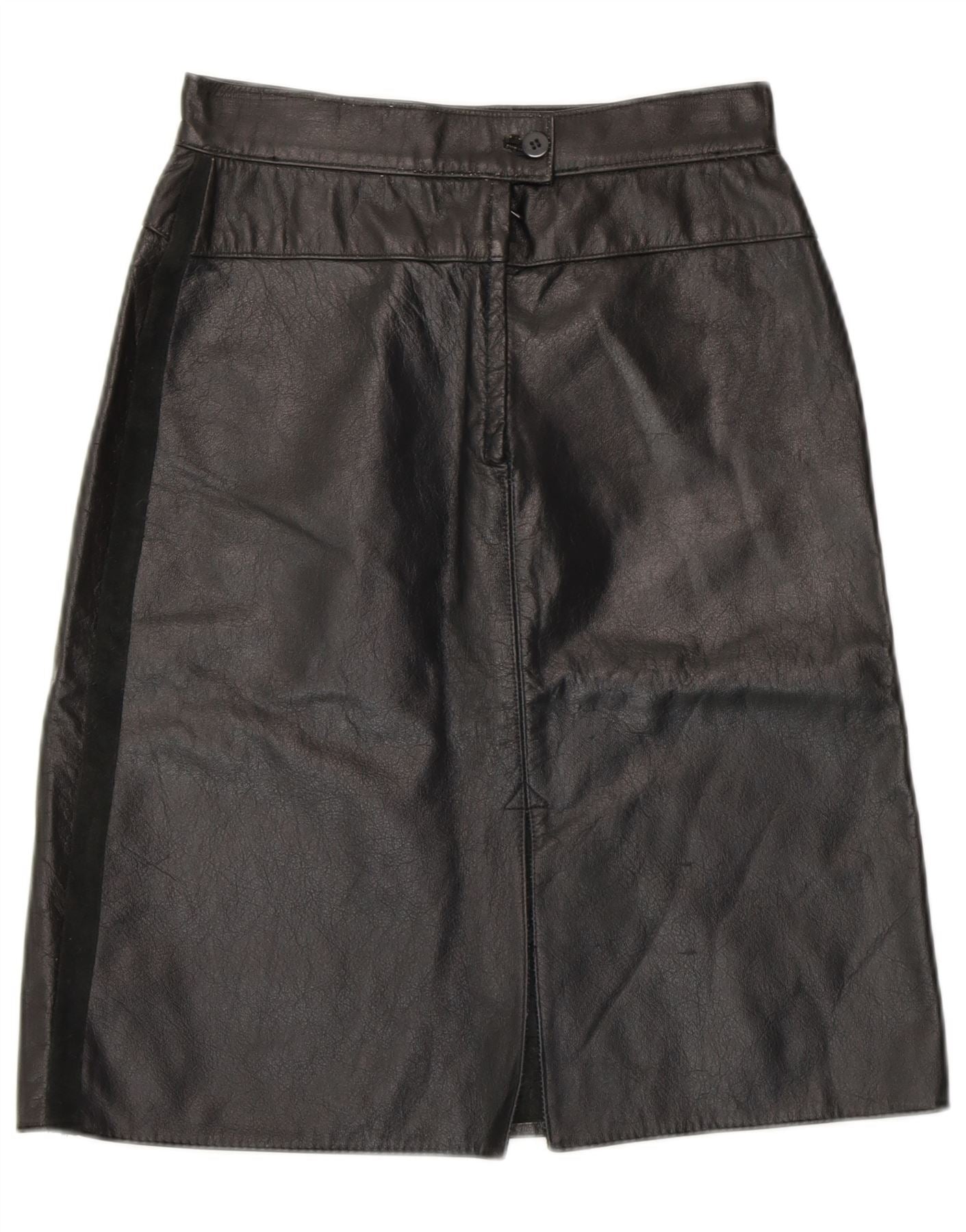VINTAGE Falda de cuero para mujer W26 Pequeño Negro
