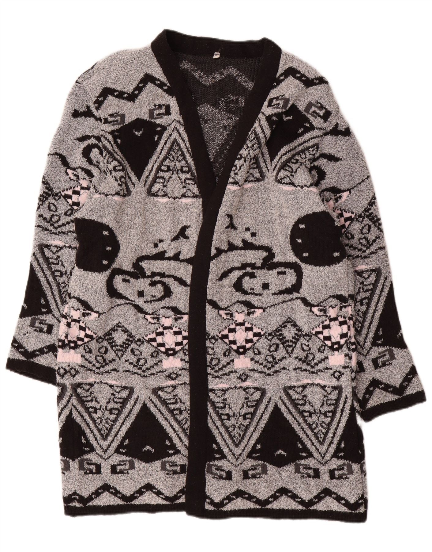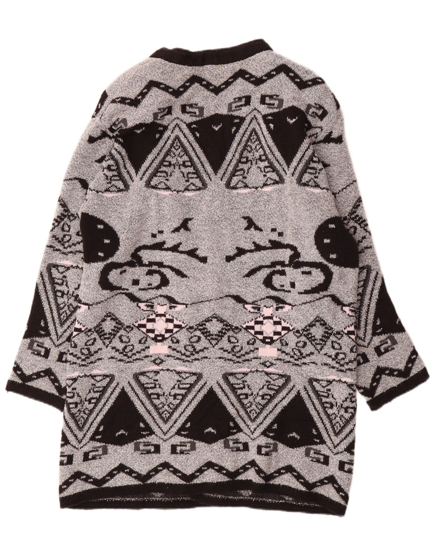 VINTAGE Mujer Longline Open Cardigan Suéter EU 44 XL Gris Geométrico