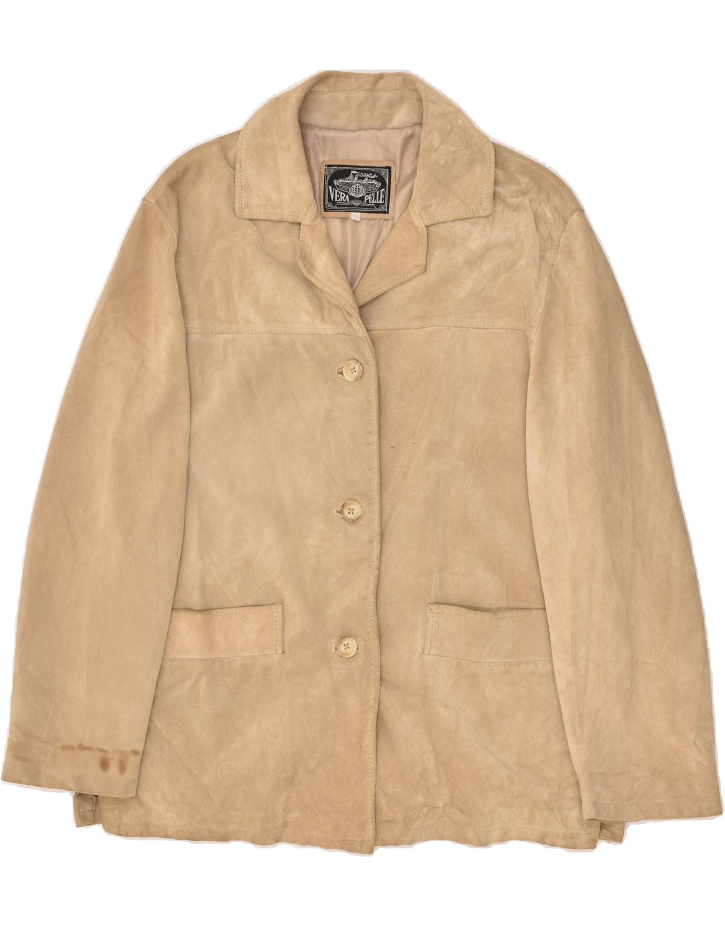 VINTAGE Womens Loose Fit Leather Jacket IT 44 Medium Beige Leather