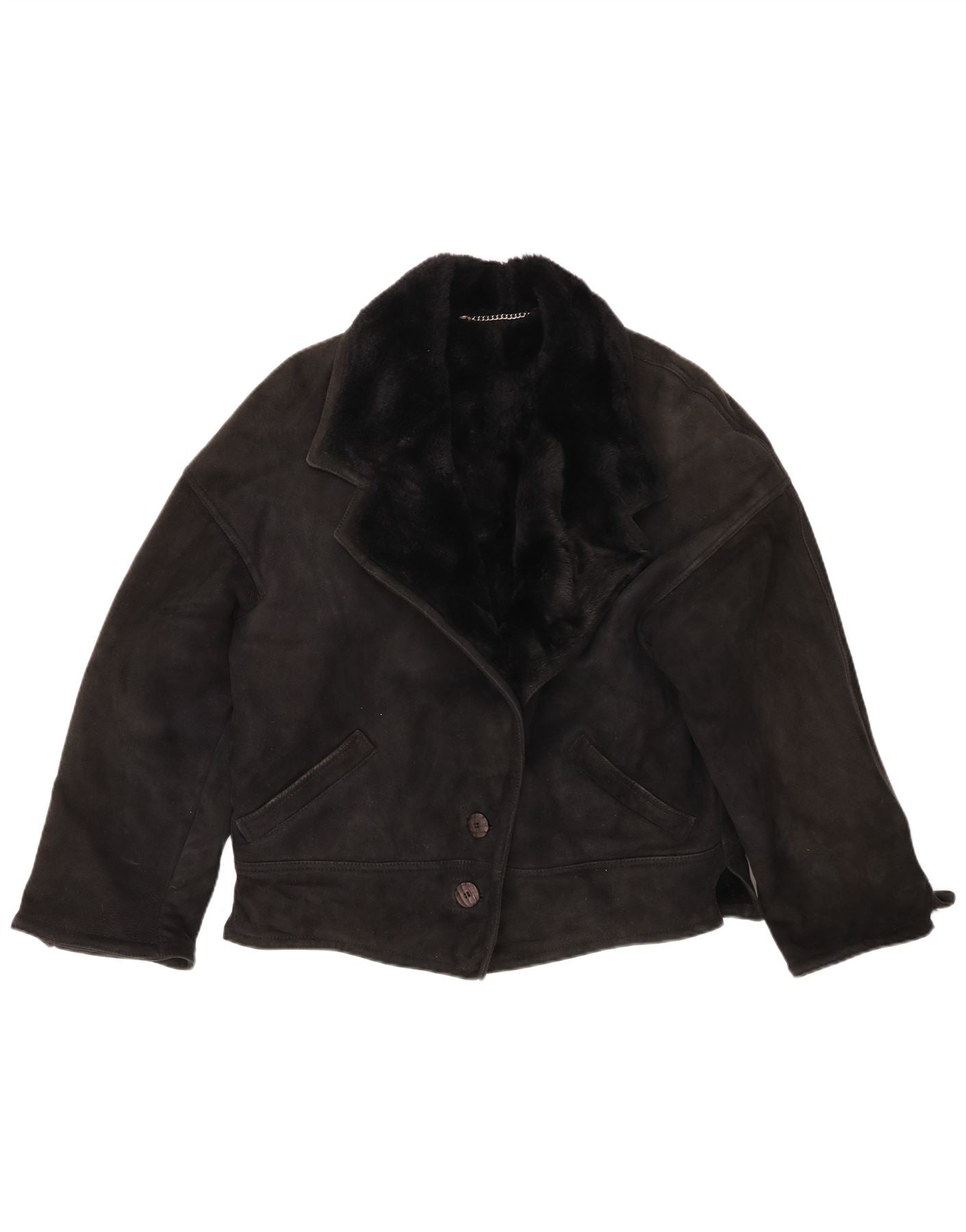 VINTAGE Chaqueta de piel de oveja holgada para mujer IT 44 Piel de oveja negra mediana