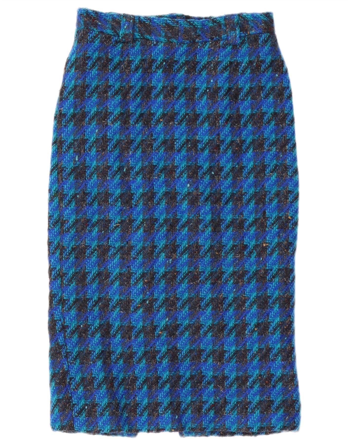 VINTAGE Falda midi para mujer W28 Pata de gallo azul medio