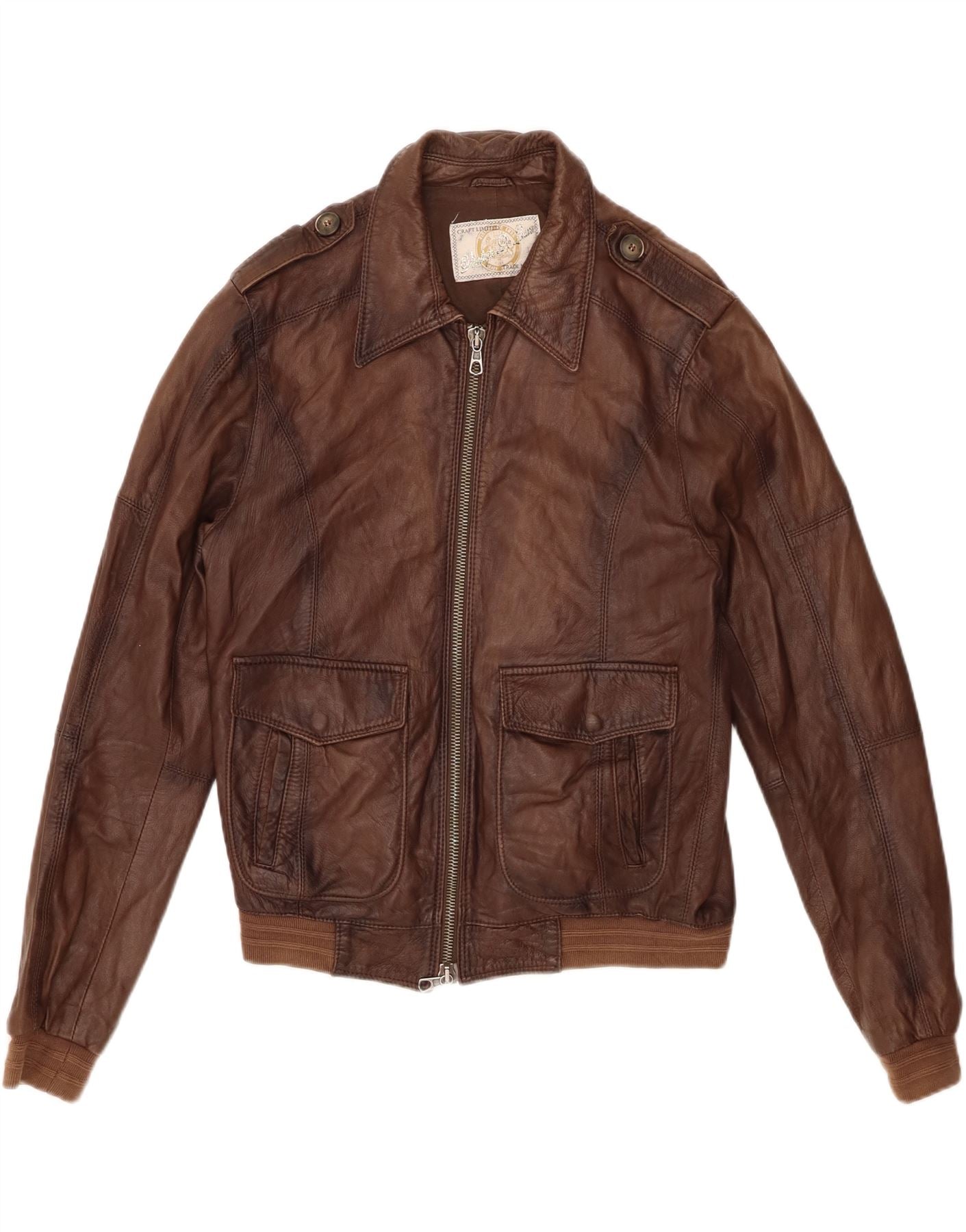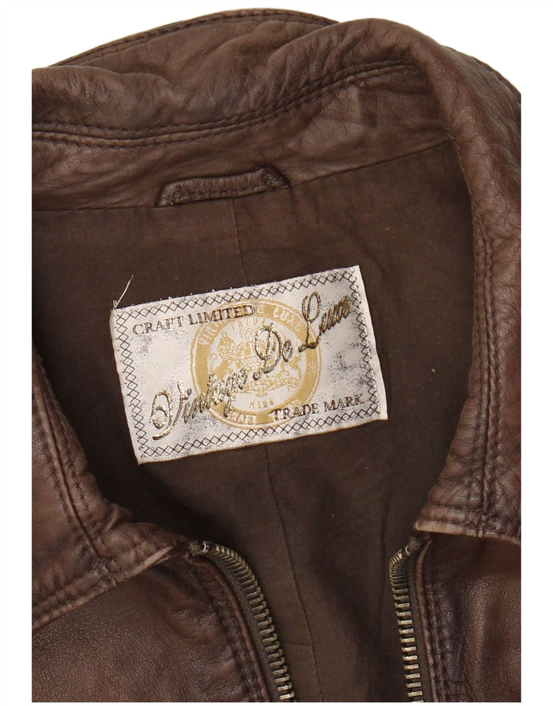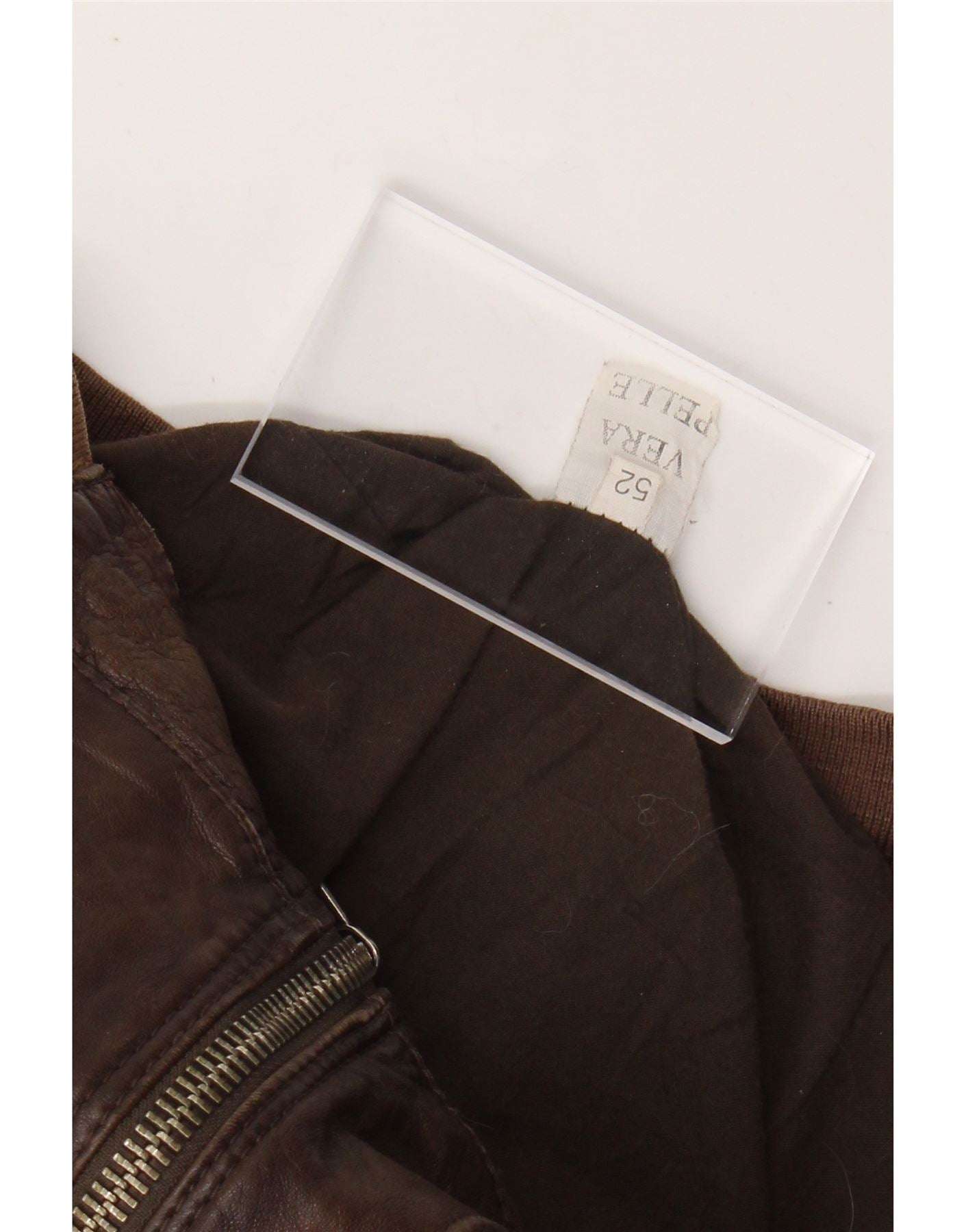 VINTAGE Chaqueta de cuero bomber militar para mujer IT 52 2XL Cuero marrón